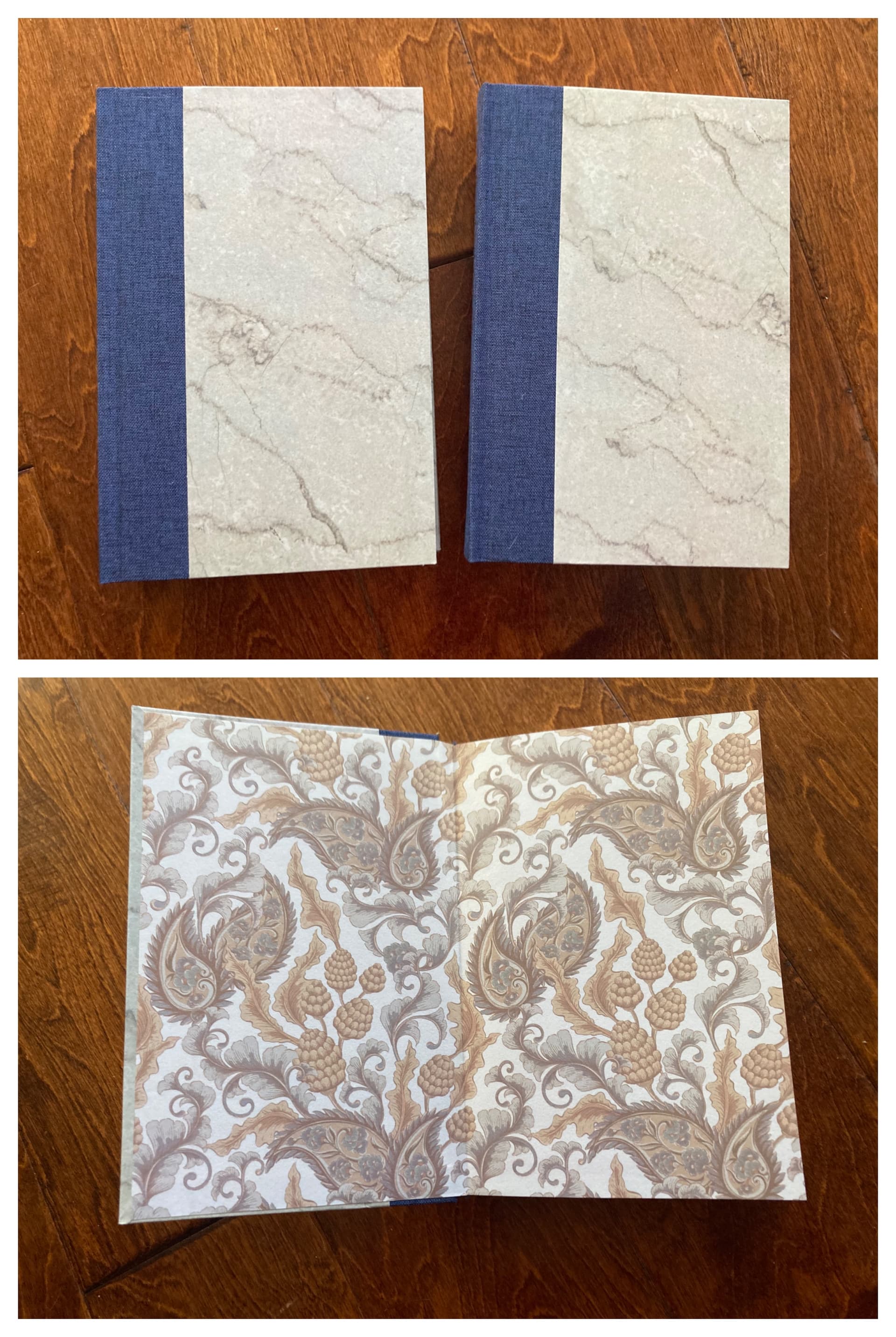 Brief Description: I had the perfect patterned paper in stash for the endpages of this book but it was double sided cardstock with an almost hydrophobic surface and glue didnât stick very well. I ended up having to lightly sand one side so the adhesive had something to grip.