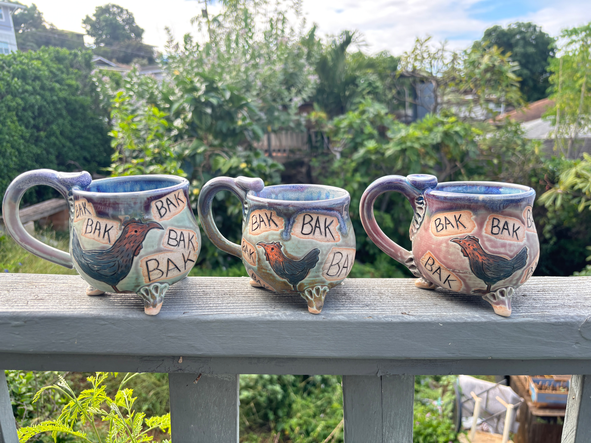 Just sharing a very small batch of three sassy crassy chicken mugs!