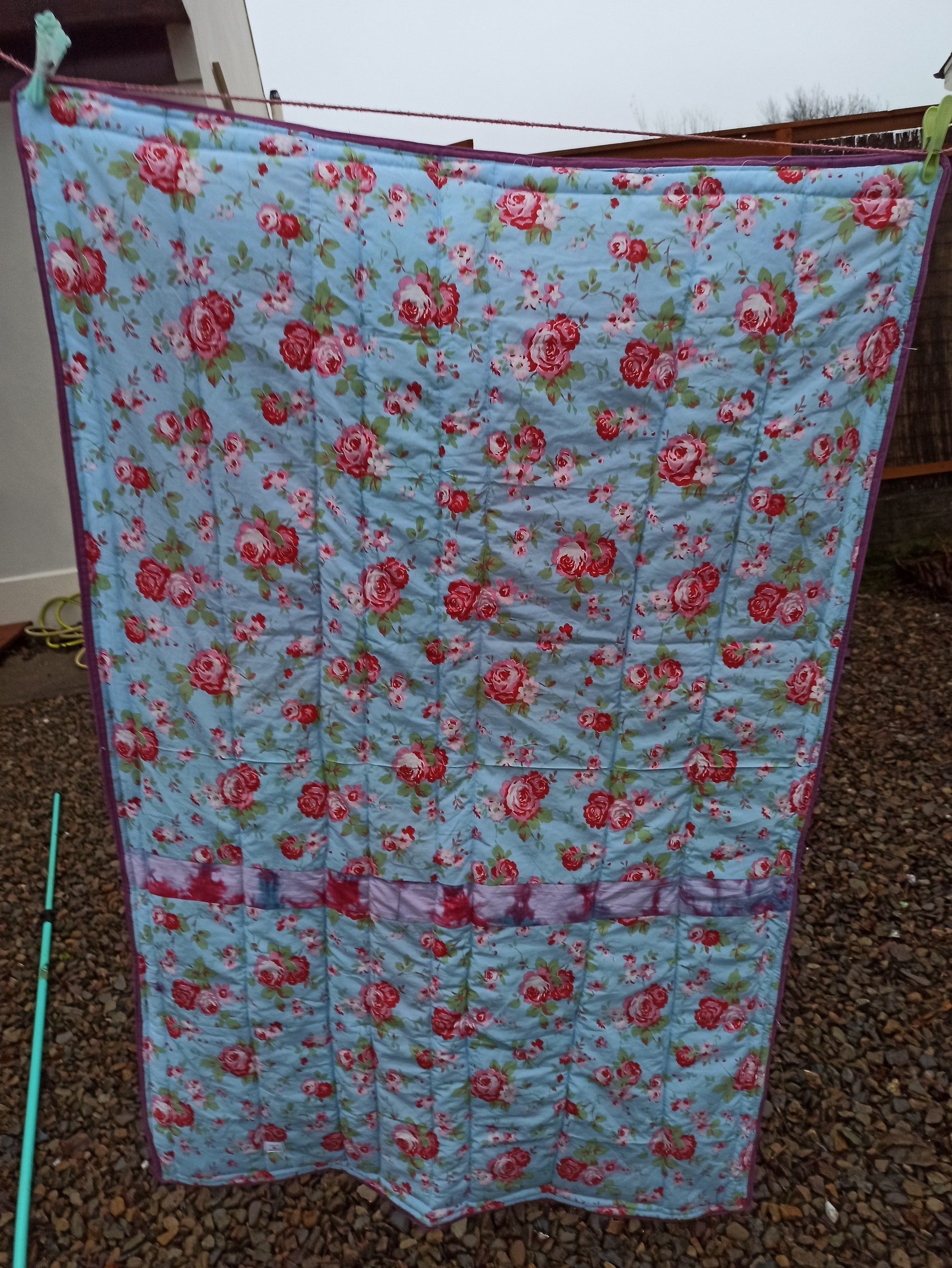 It was a fast make because I had all the scrap strips. It ended up about 40" x 50" it’ll go into my daughter’s car to brighten up the back seat.