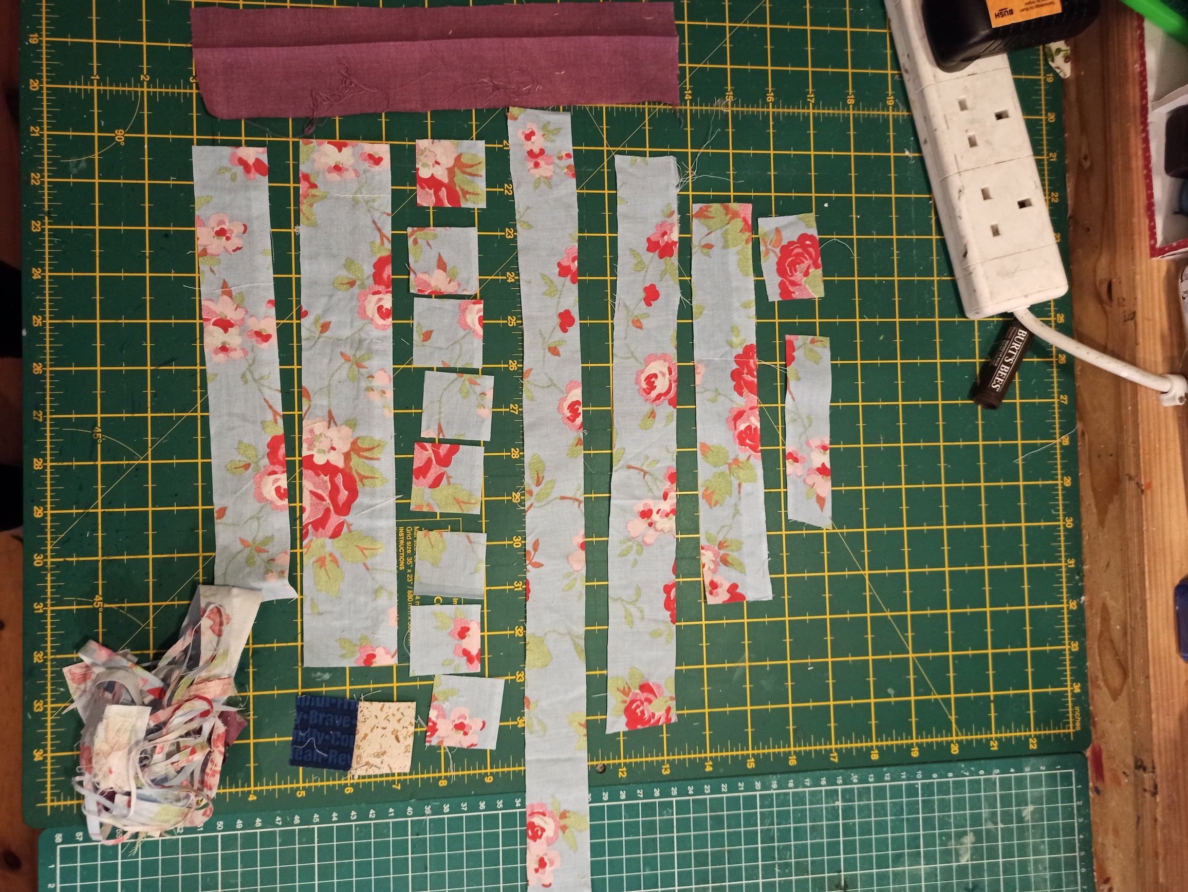 Thoughts on scrap. I used to have a scrap mountain, stuffed in bags and forgotten. Through trial and error I now have a system, which might be useful to you. After every project, I immediately cut leftover fabric into usable strips. My preference is for 2.5" strips and squares. Once I’ve cut as many of them as I can, then I cut the biggest strips, down to about 1.5" anything smaller than that I throw away. I also cut some 1.5" squares for leaders and ender’s.