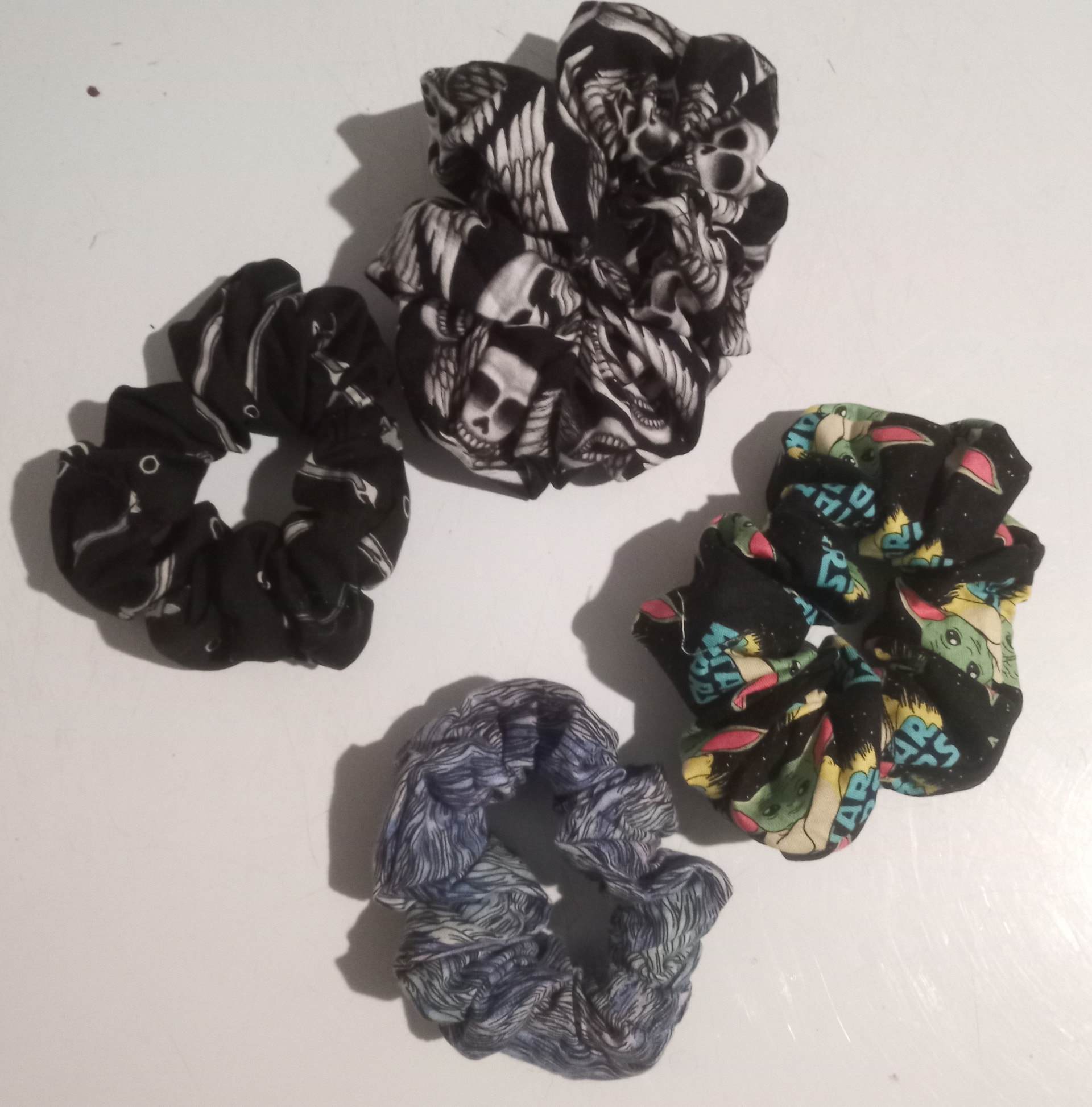 My kids saw @MistressJennie 's wonderful scrunchies of holding tutorial, and requested some of their own. So I followed the tutorial and made a selection for my son’s birthday. I had the perfect size fabric scraps with some fun themes to use, and was able to make these in about an hour.