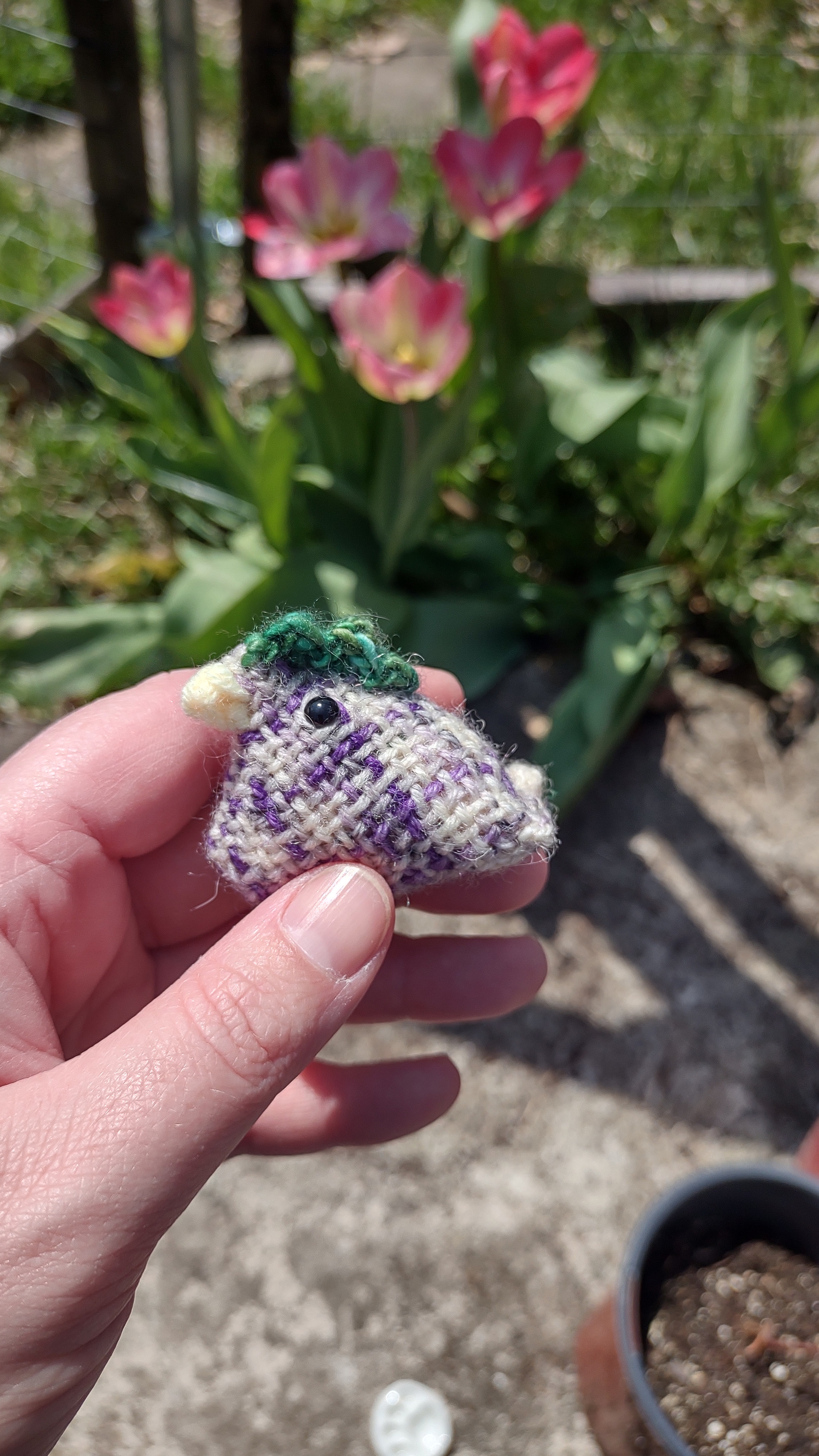 I received from @Gozer the most wonderful little monster. They told me their name is Strawberry Galaxy and their bird friend is Squirt. They are absolutely adorable!