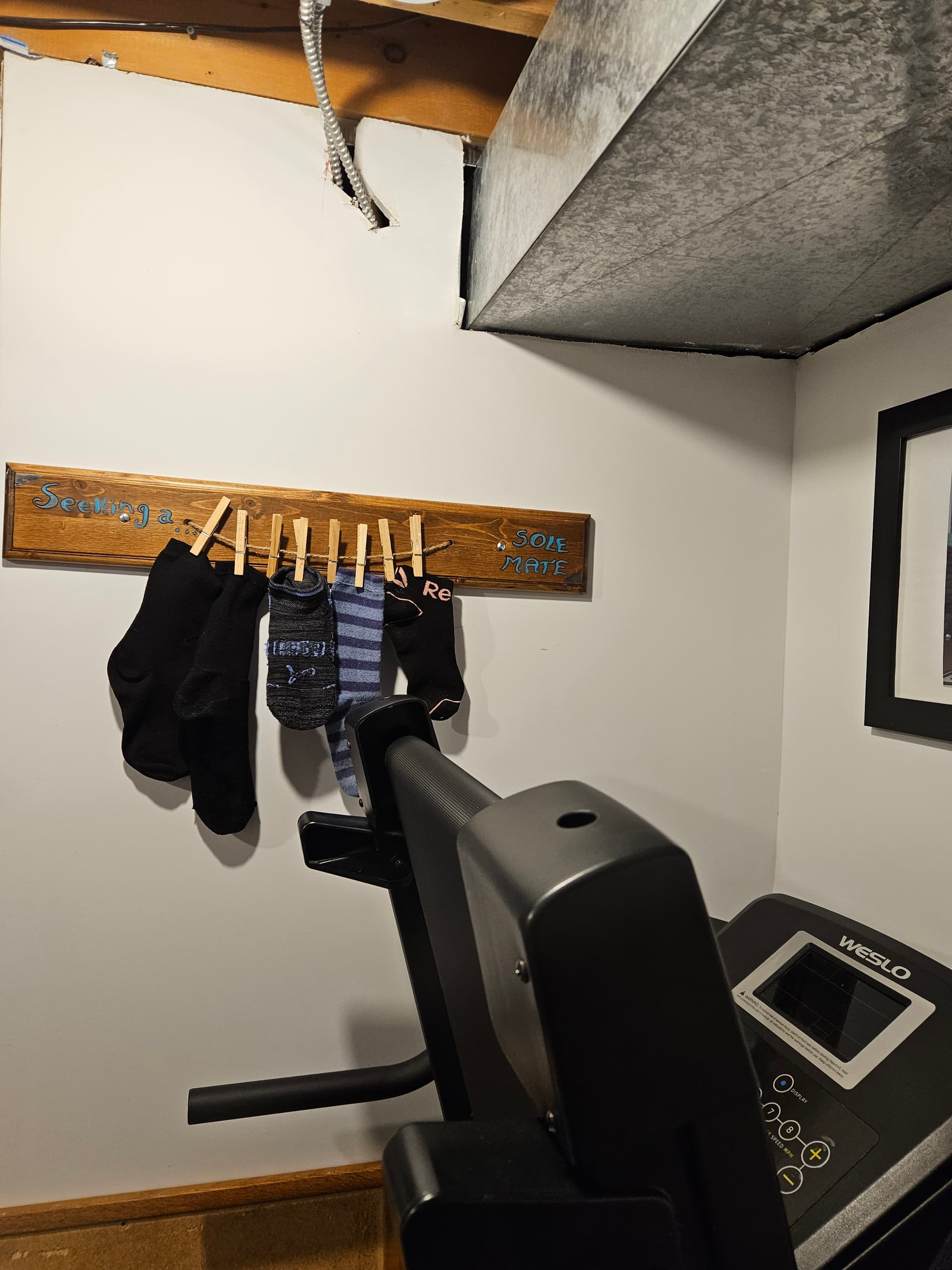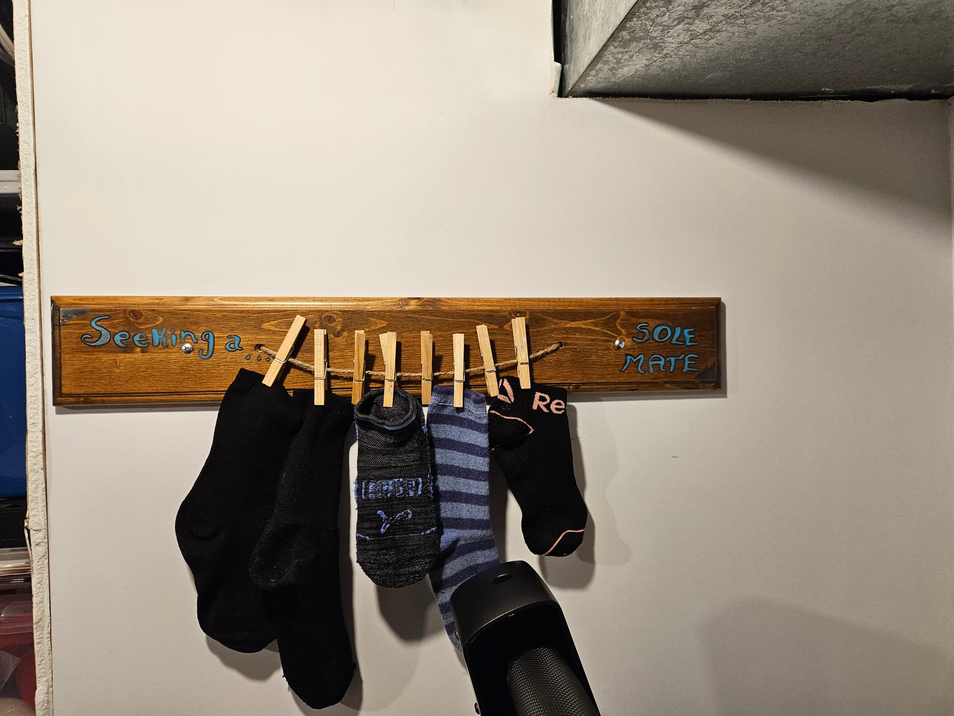 And then, many weeks later, I finally put it up on the wall… with the lone socks!