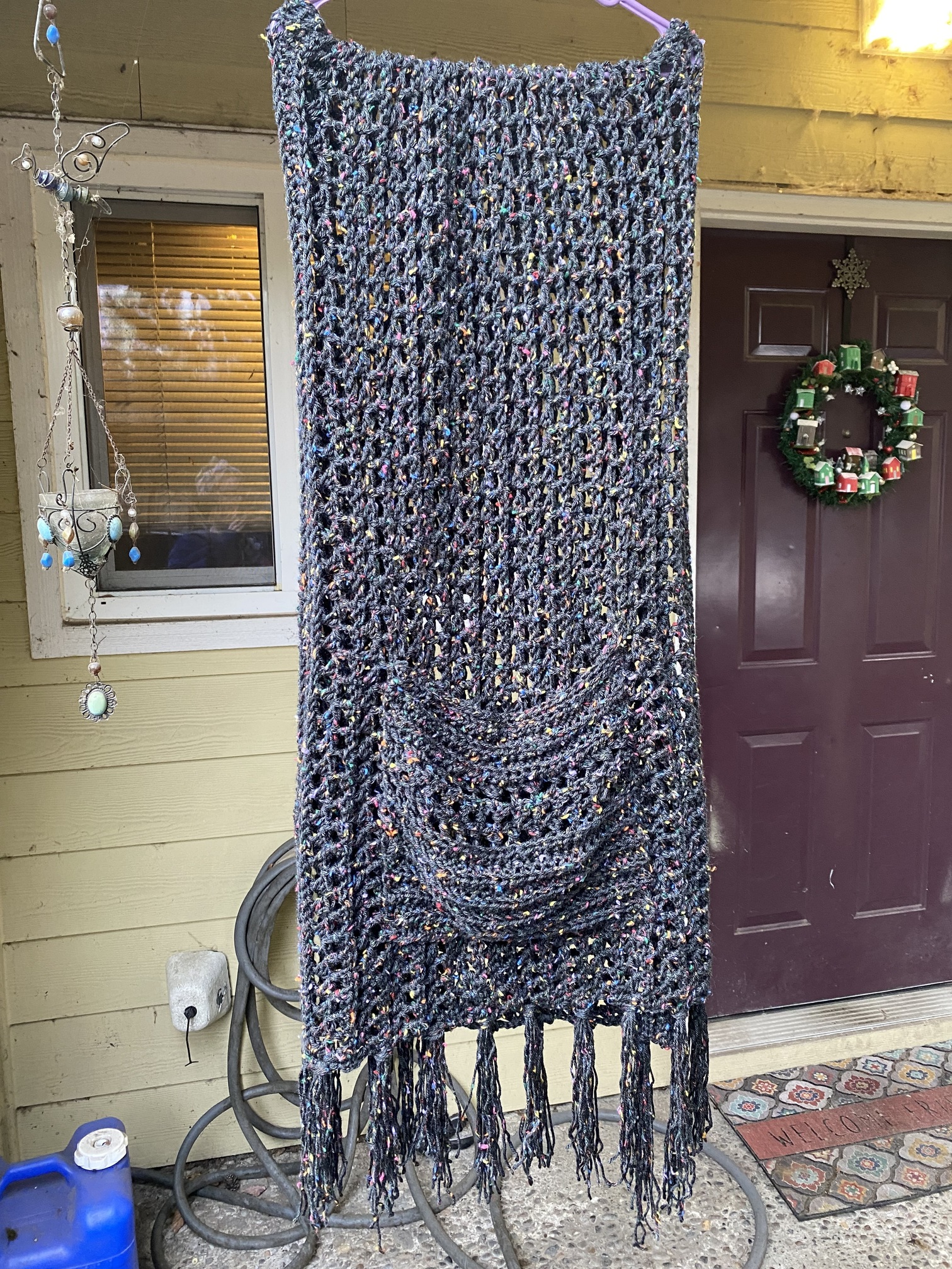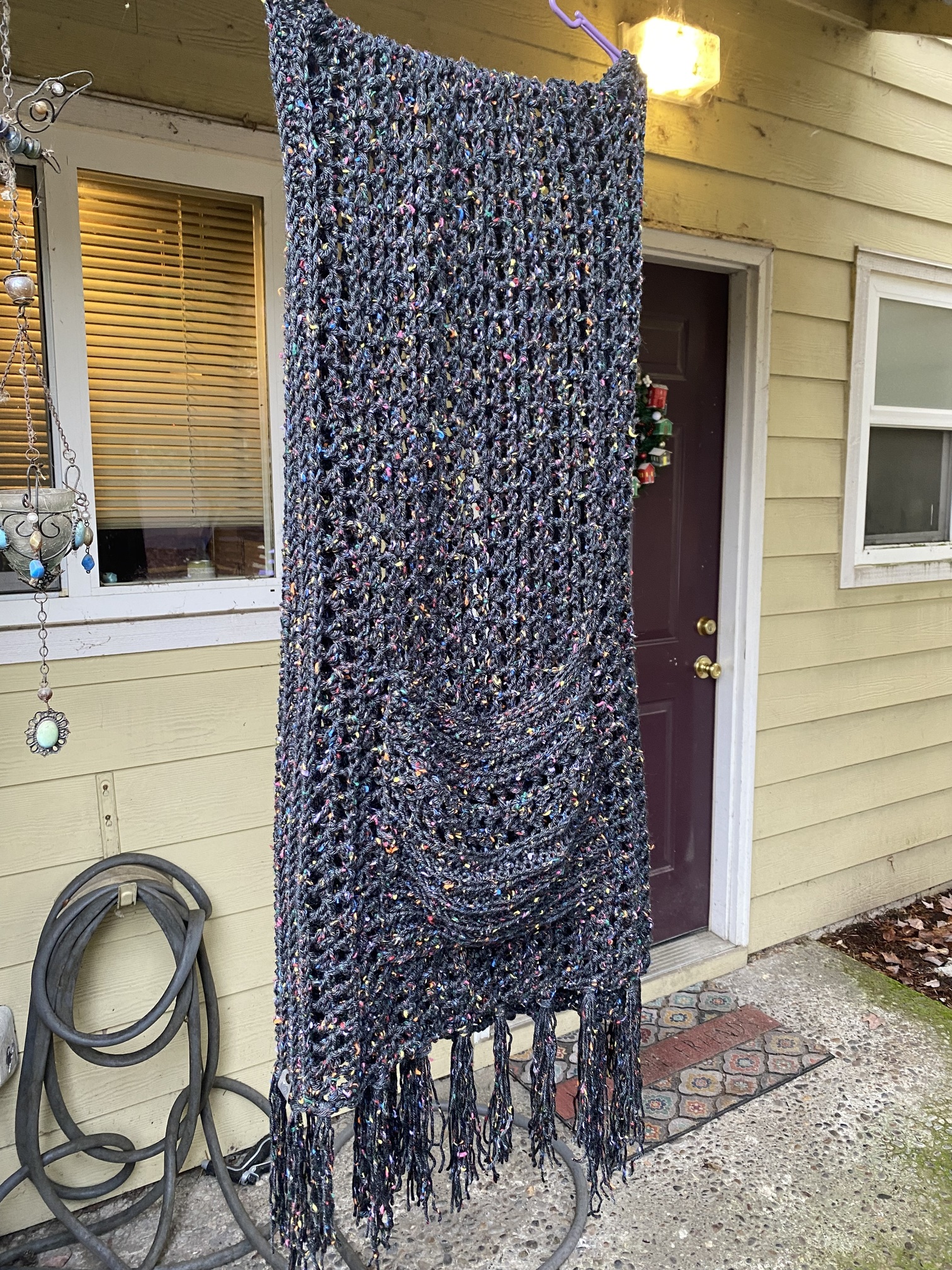 Made three shawls with this pattern, only took photos of 2 of course! These whipped up really easy and make a beautiful gift.