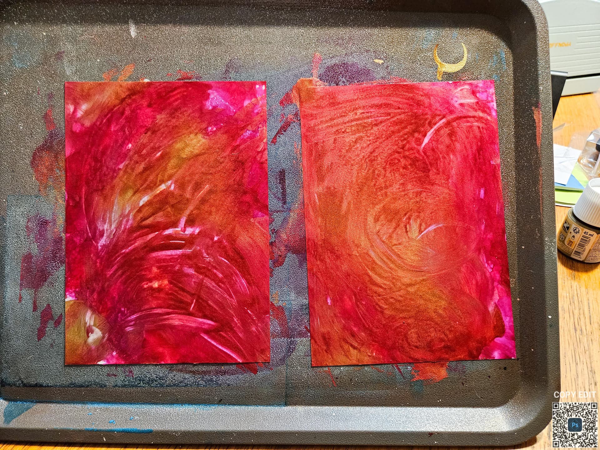 I started with some yupo paper, alcohol ink, and acrylic ink. I swirled and swished them around until I had an intersting pattern.