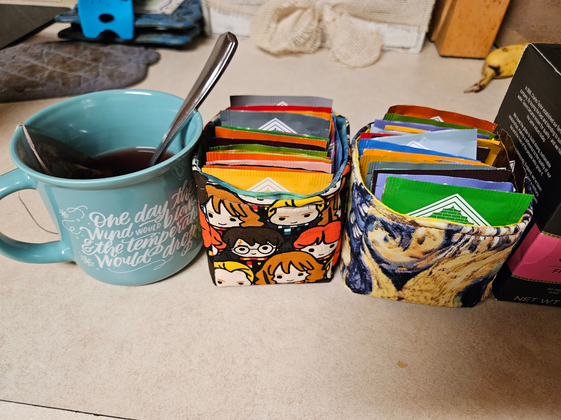 I definitely want to try this one as I also have a tea bag storage problem. They would be perfect for organizing tea by the week, month, type, etc. Plus, using up some precious favorite fabrics is always good! I love these. Great job!