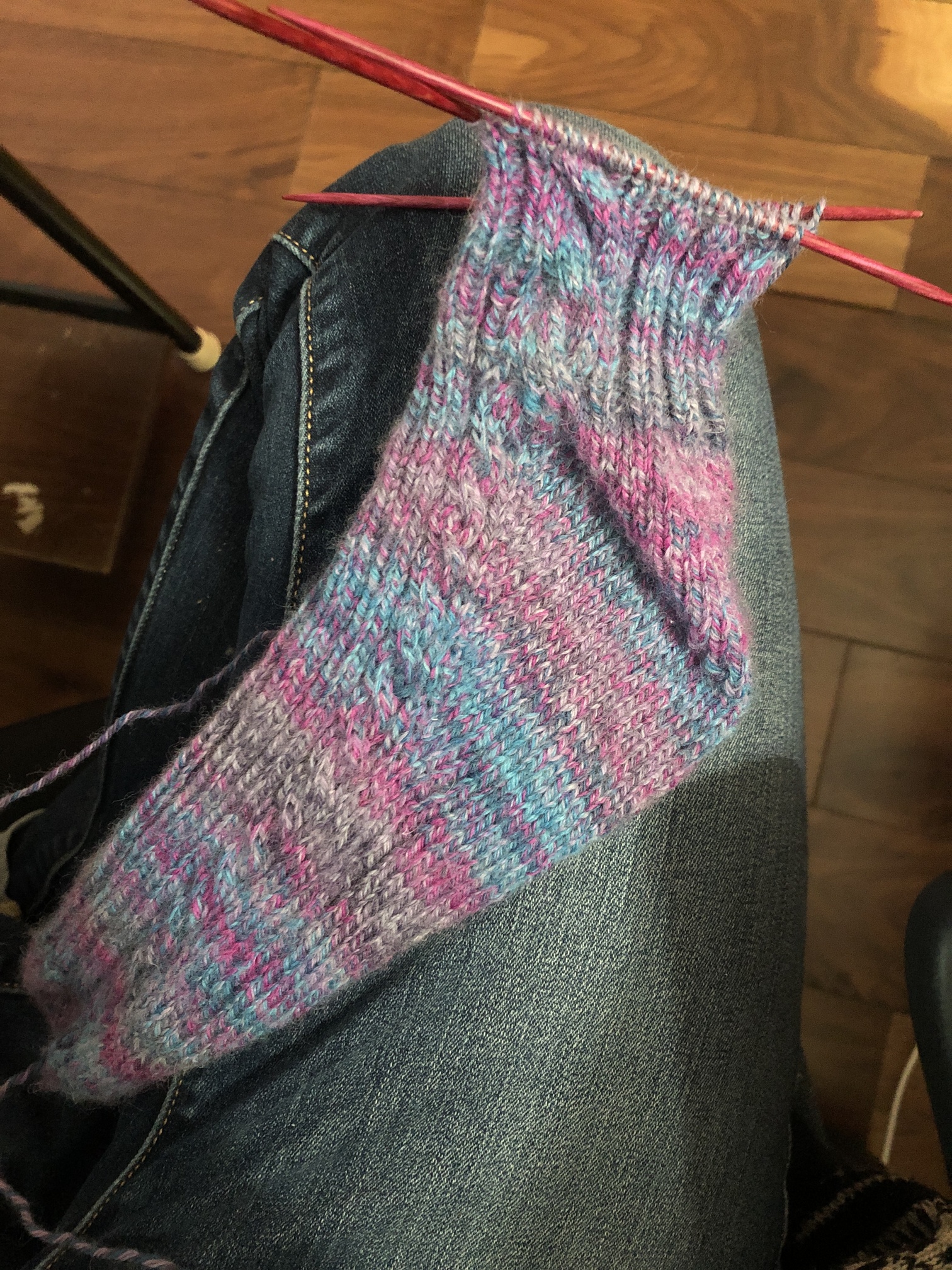 Maybe for one of the sockalongs we can do a two at a time pair…let me see what I have in patterns. I would be willing to try again (as my one purple cabled sock sits in a basket for over a week now…) ha