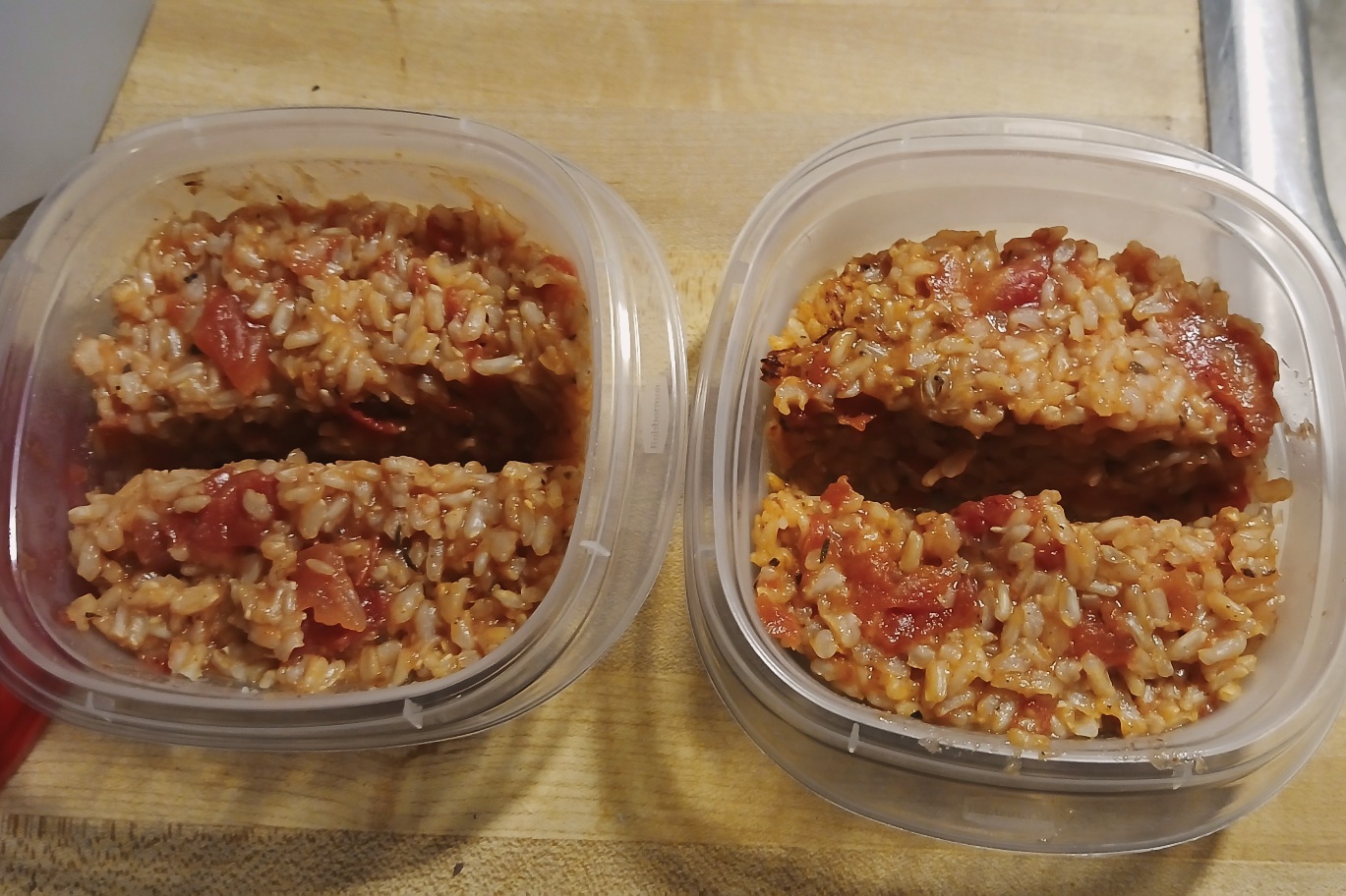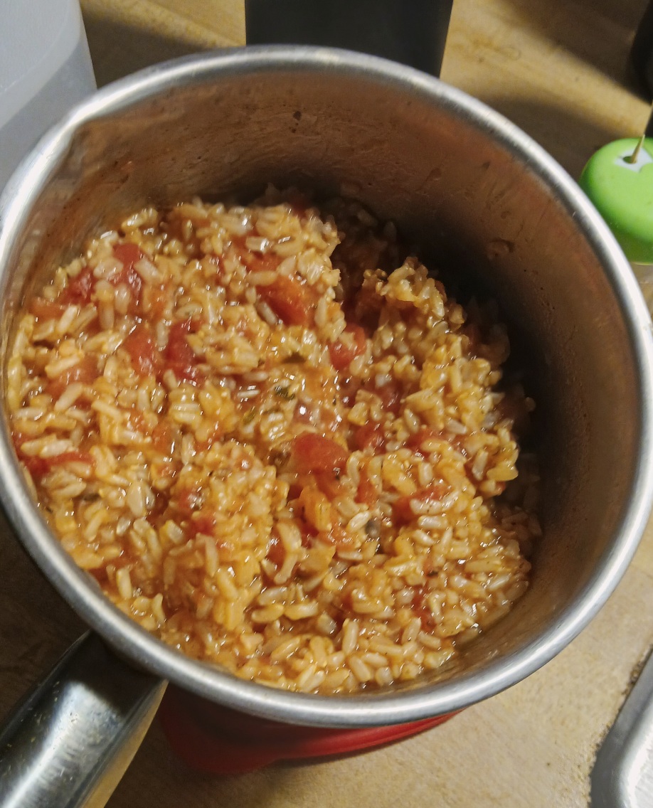 Since the tiny fridge didn’t freeze the rice yet, I added a little extra water to keep the rice from burning.