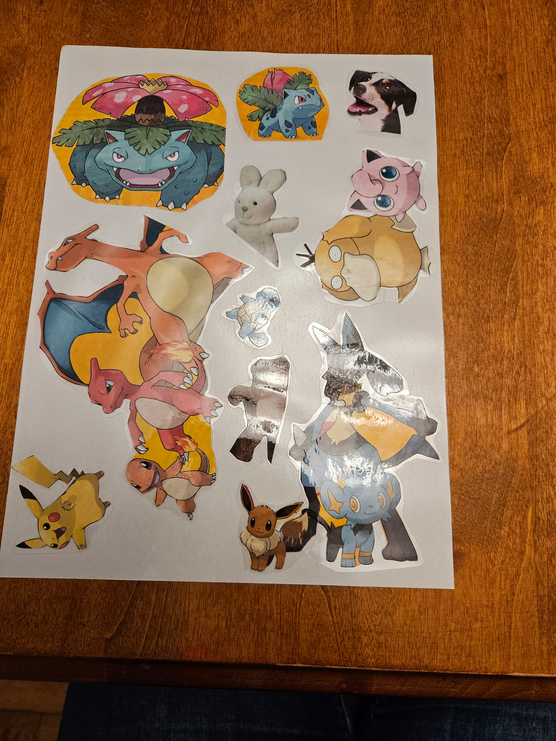 Costco magazine had an article about Pokémon’s 30th anniversary. I cut out the pictures from the cover and article, as well as some extra pictures, and made them into stickers.