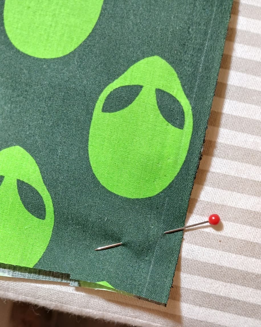 First I pinned one corner, at a position, then I pinned the other corner, once I had the patterns matching as best as possible.