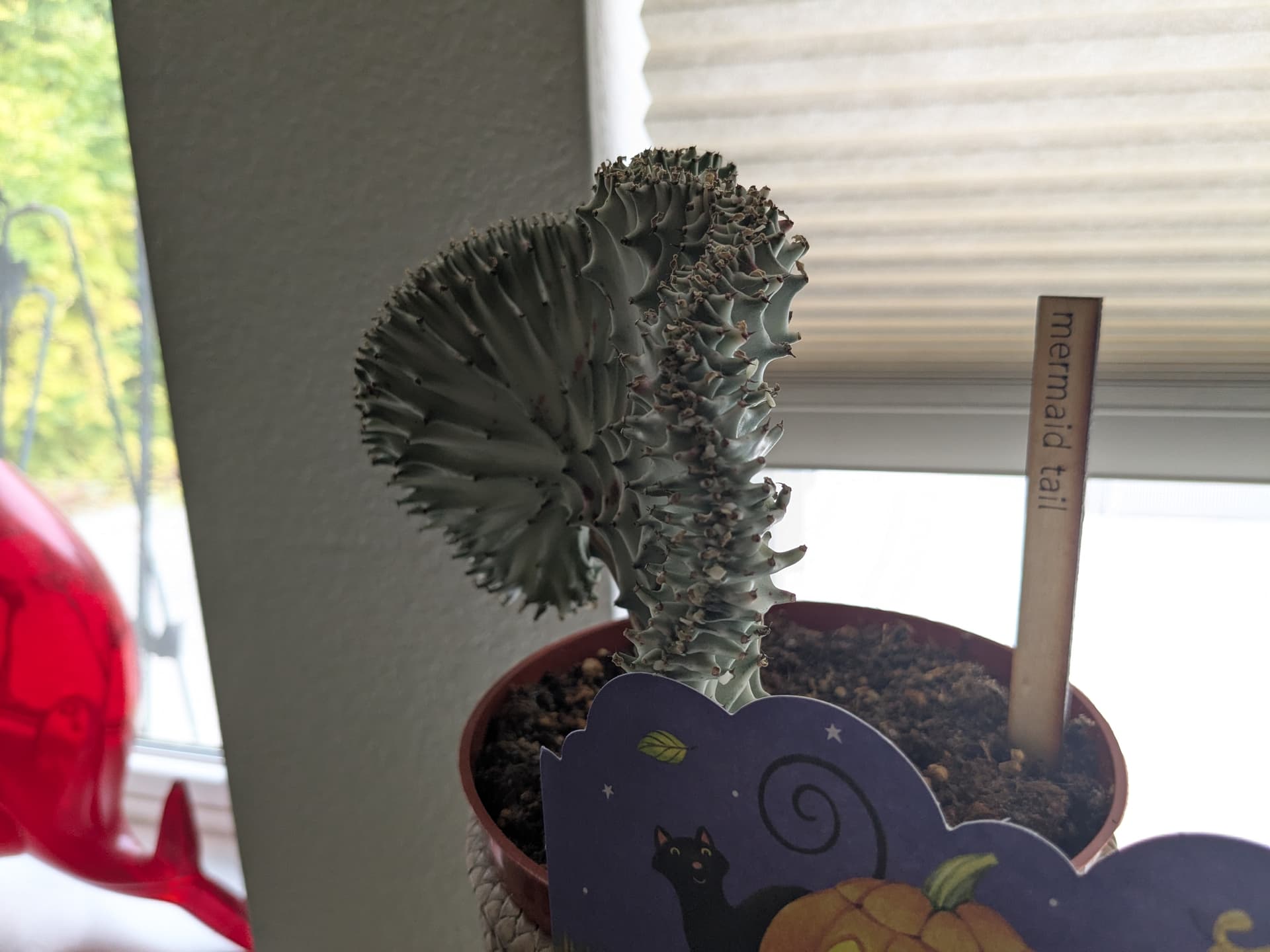 This is my second newest plant. It’s a mermaid tail and now has a stake.