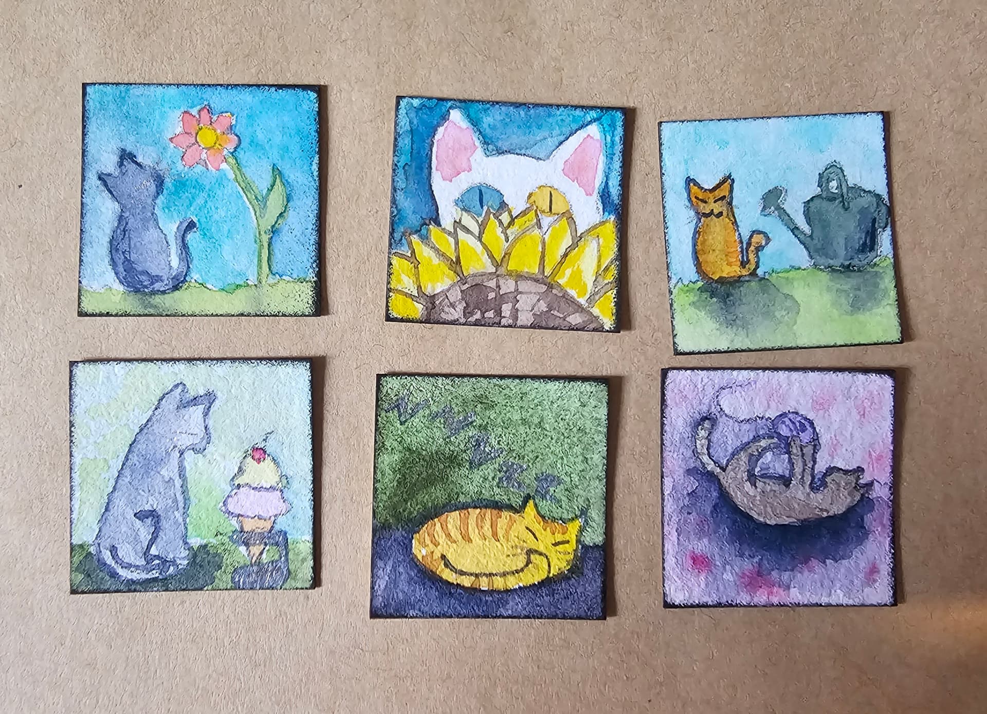 I received from @Mountains_and_Clouds today! She sent me 6 of my cat theme and mixed some of my garden theme in there. We all know how talented she is from her recent art show. She continued the talent streak with these lovely gems!