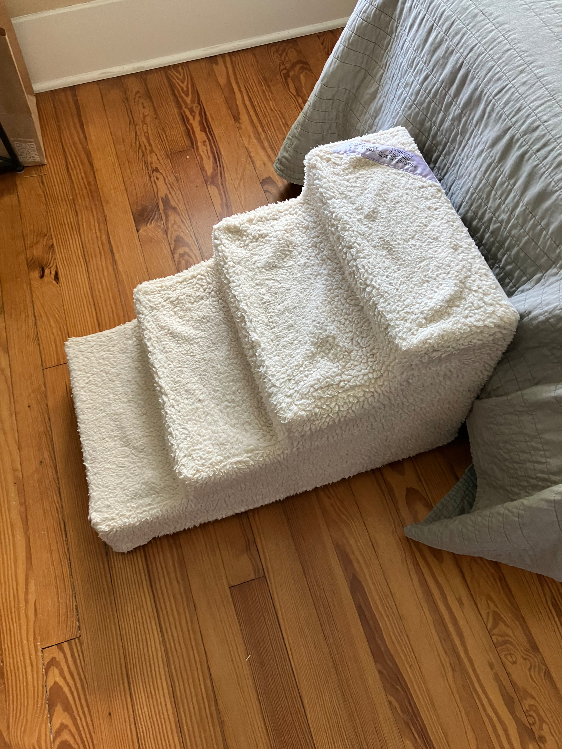 This was part of what I worked on today. One of the old dog steps in our house. The cover is worn thin in the parts that cover the tops of the steps. They are not available anymore, and I like to fix things if I can, before buying new anyway.