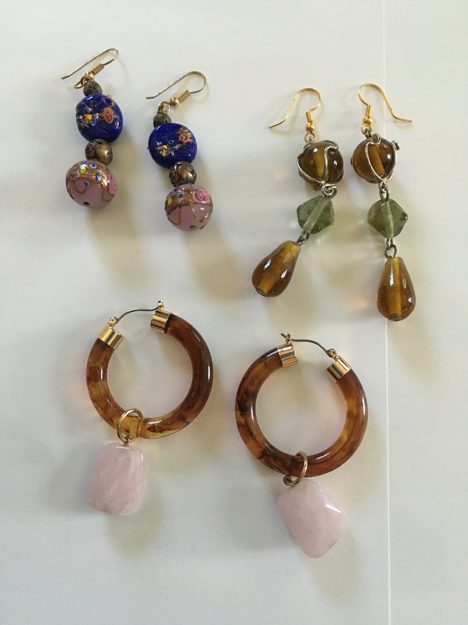 Yay! I reworked 3 pairs of earring that were too heavy for my 57 yr old earlobes and ended up with 6 pairs. They all have large glass beads, which I love, but this made them too heavy in their original form.