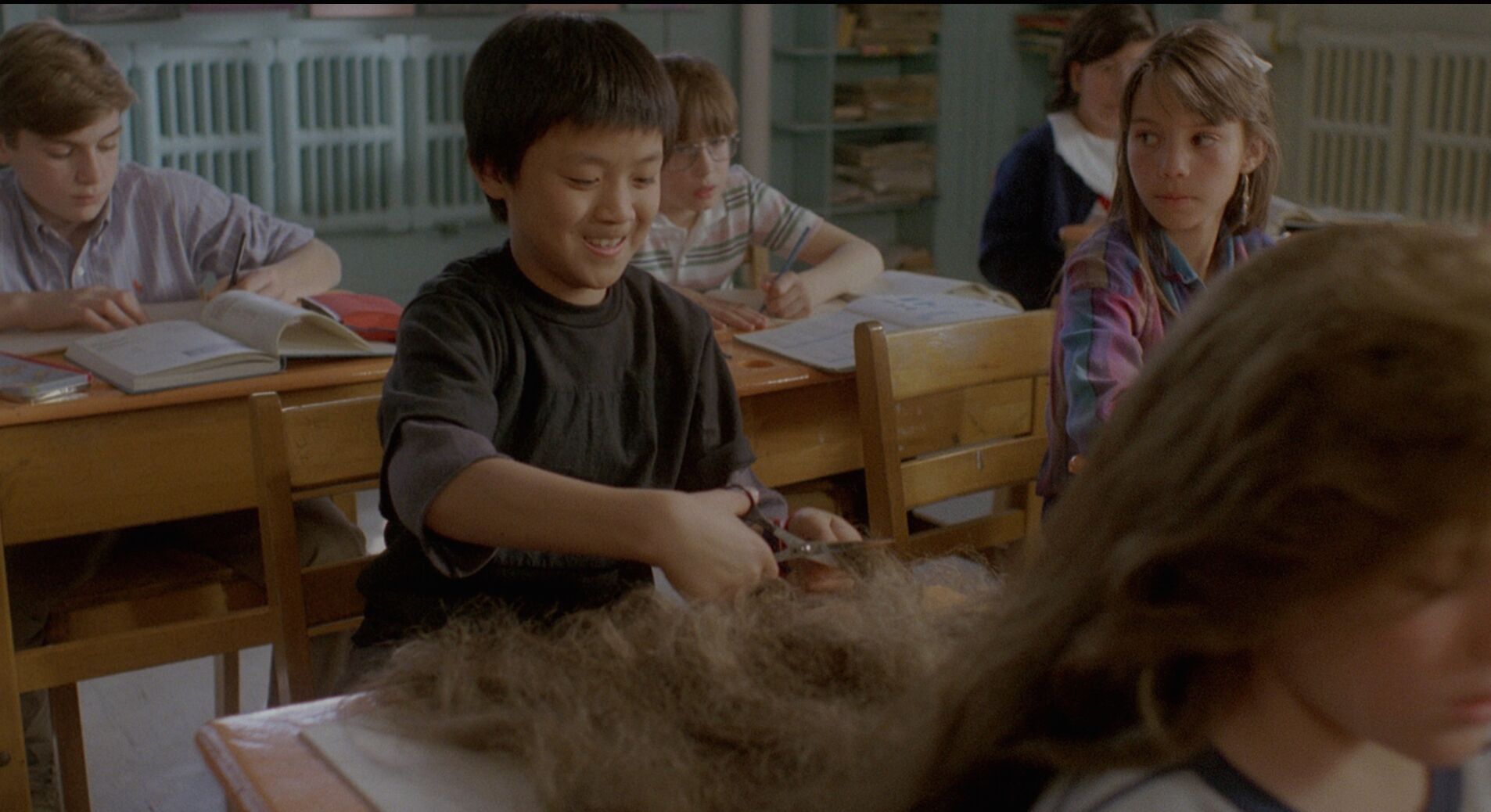 This 12-year old kid goes into a “haunted house,” sees something terrible that he blocked out, and then loses all his hair. He’s bald and all the kids make fun of him. So some ghosts of homeless people come and tell him a secret recipe for hair growth formula. Except he does it wrong and it makes his hair grow so fast that within a few days his hair is like 10 feet long and it’s basically ruining his life. His weird, angry, art teacher kidnaps him and makes a sweatshop where they make weird floppy paint brushes of his hair?? And he’s like wearing a coat made of his hair??? It’s effed up. Apparently a kid’s movie? The dialogue is unnatural and strange and I keep wondering if that’s a Canadian thing somehow? It was made in Canada…