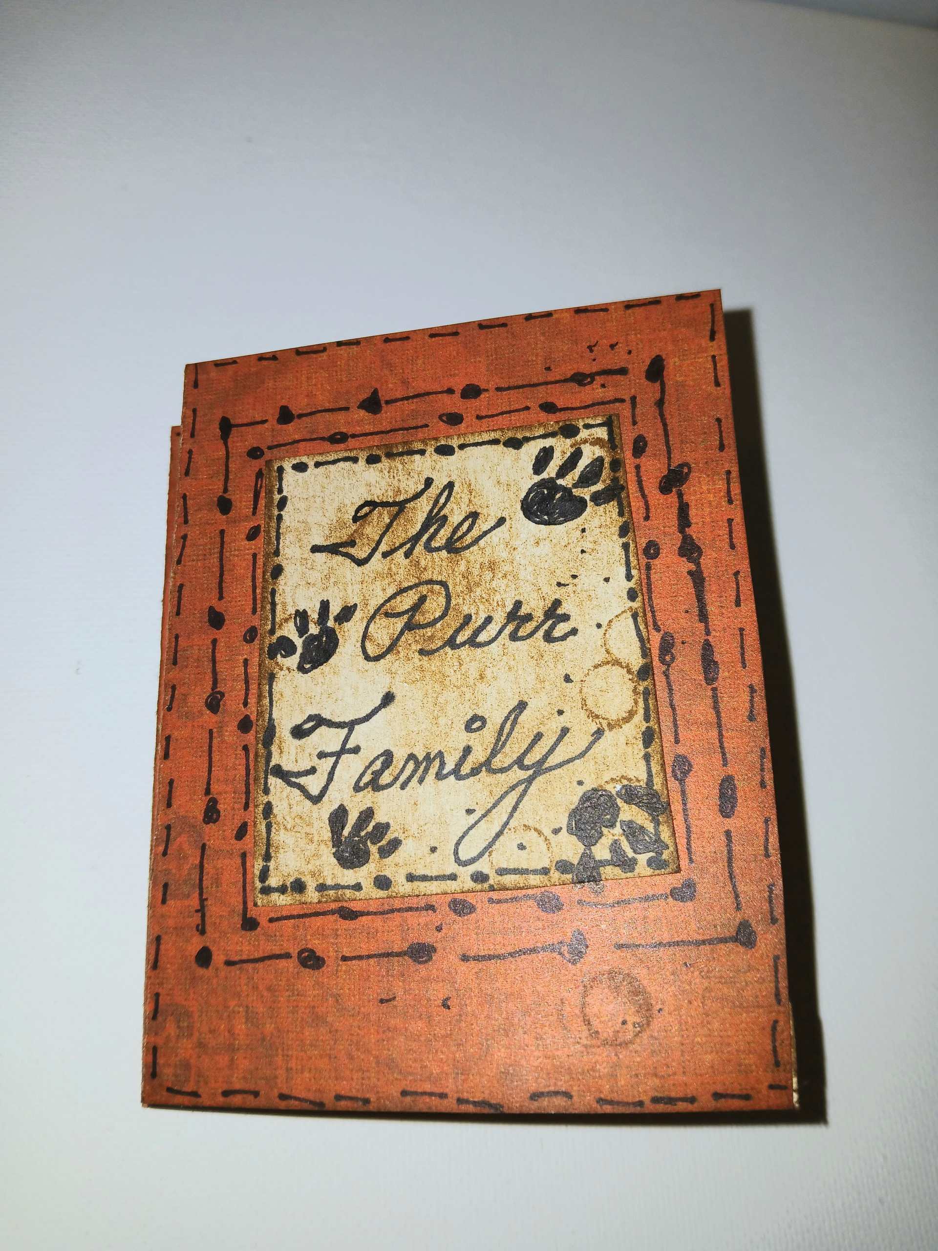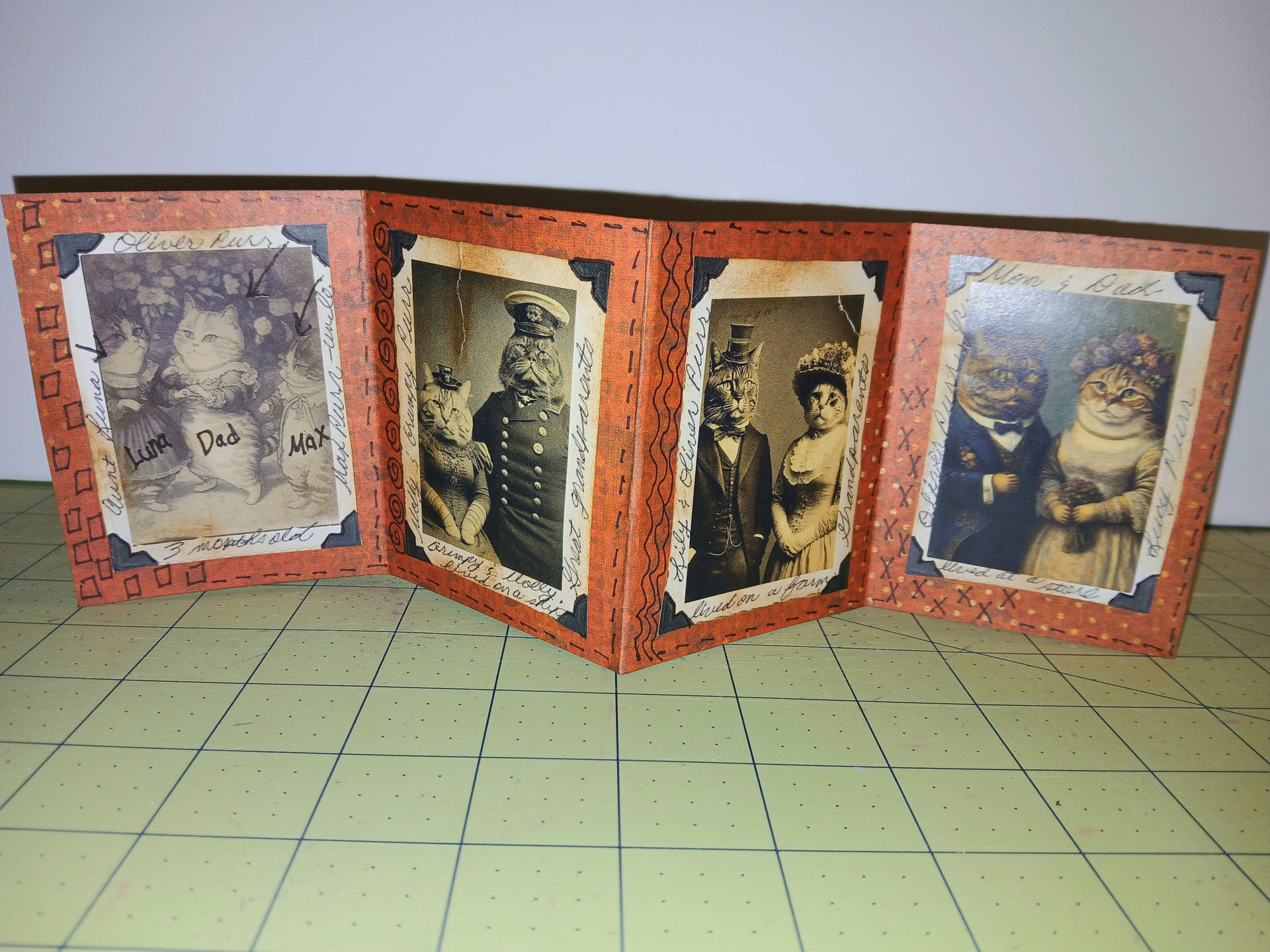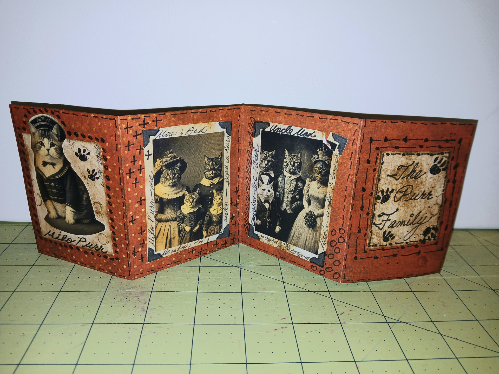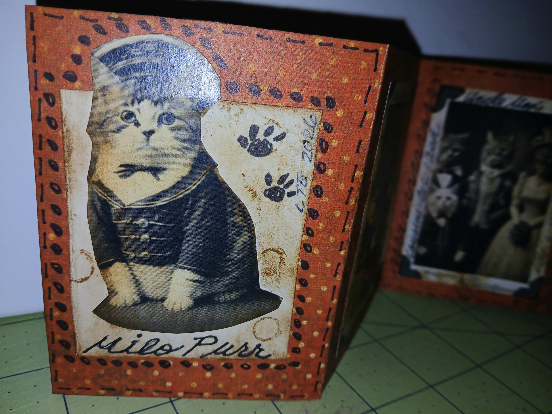 I had some leftover card stock and supplies from another larger project (Sketcbook Revival Journal) so I decided to put together a little fun photo album for one of my imaginary cats, Milo.