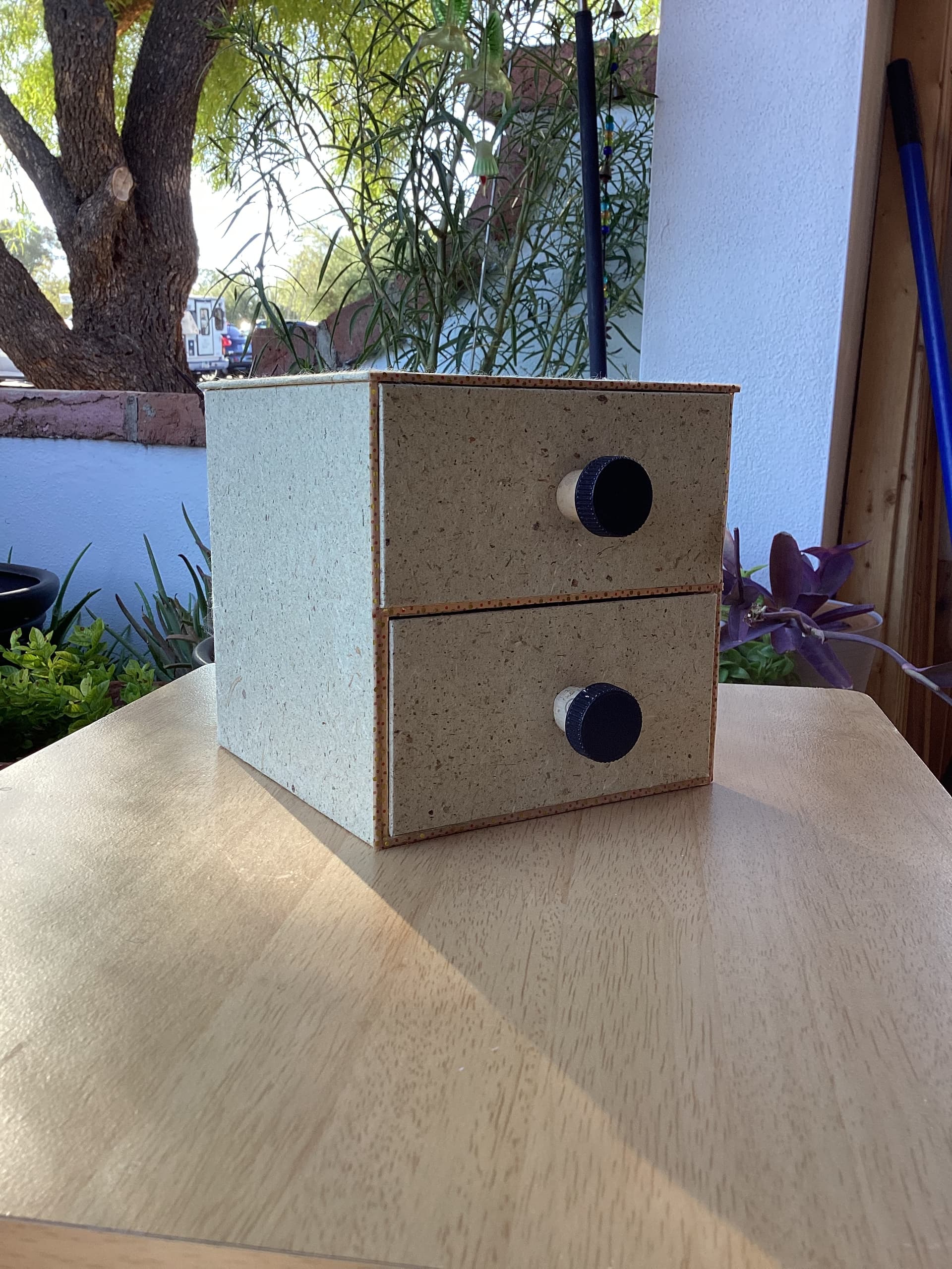 ) on the inside. My innovation was using old wine corks as knobs.