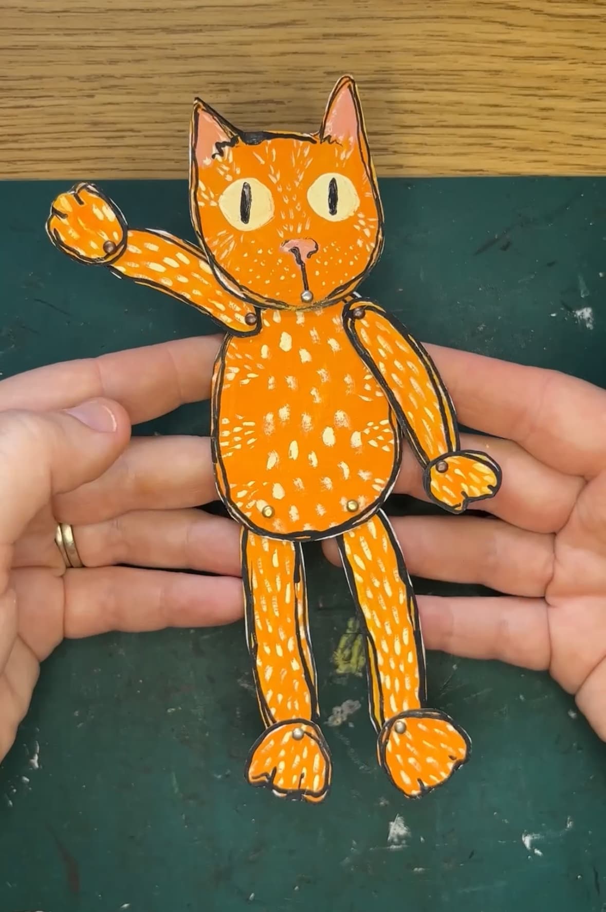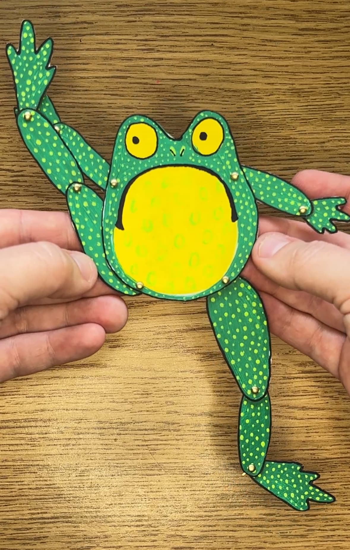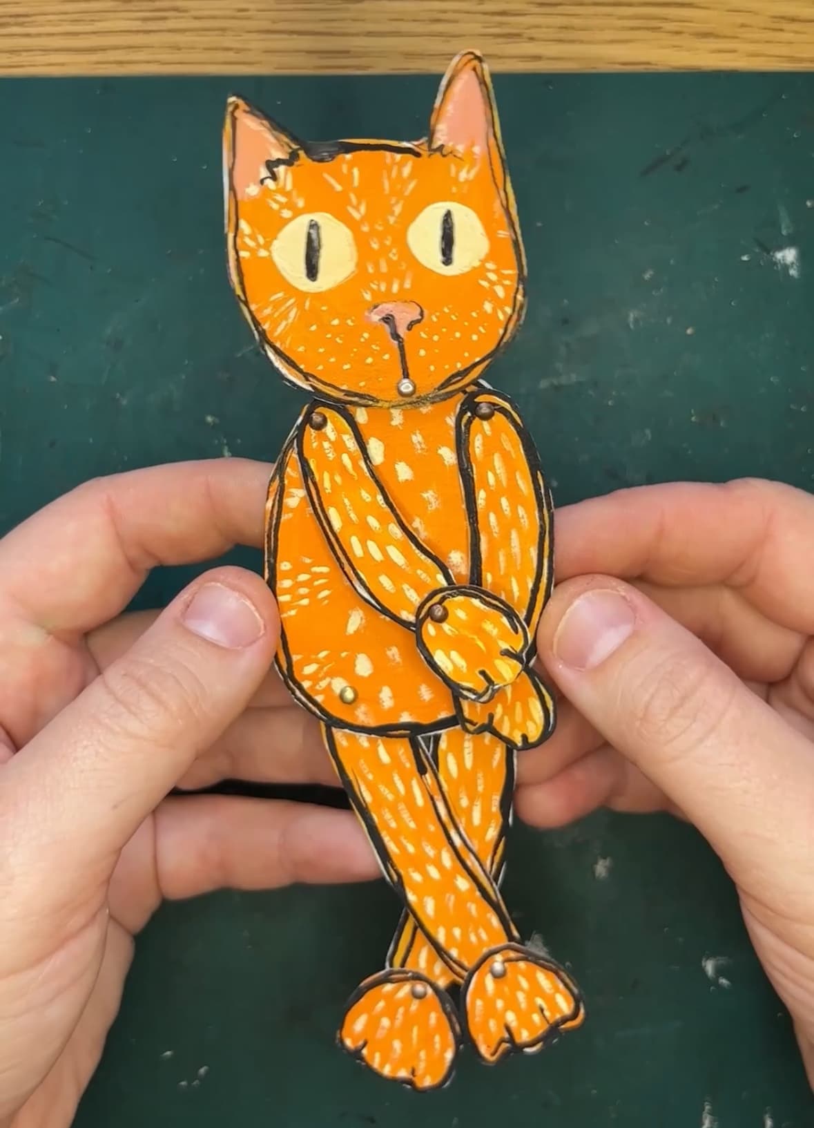 I had some teeny tiny brads I got many YEARS ago, which seemed perfect for his joints.