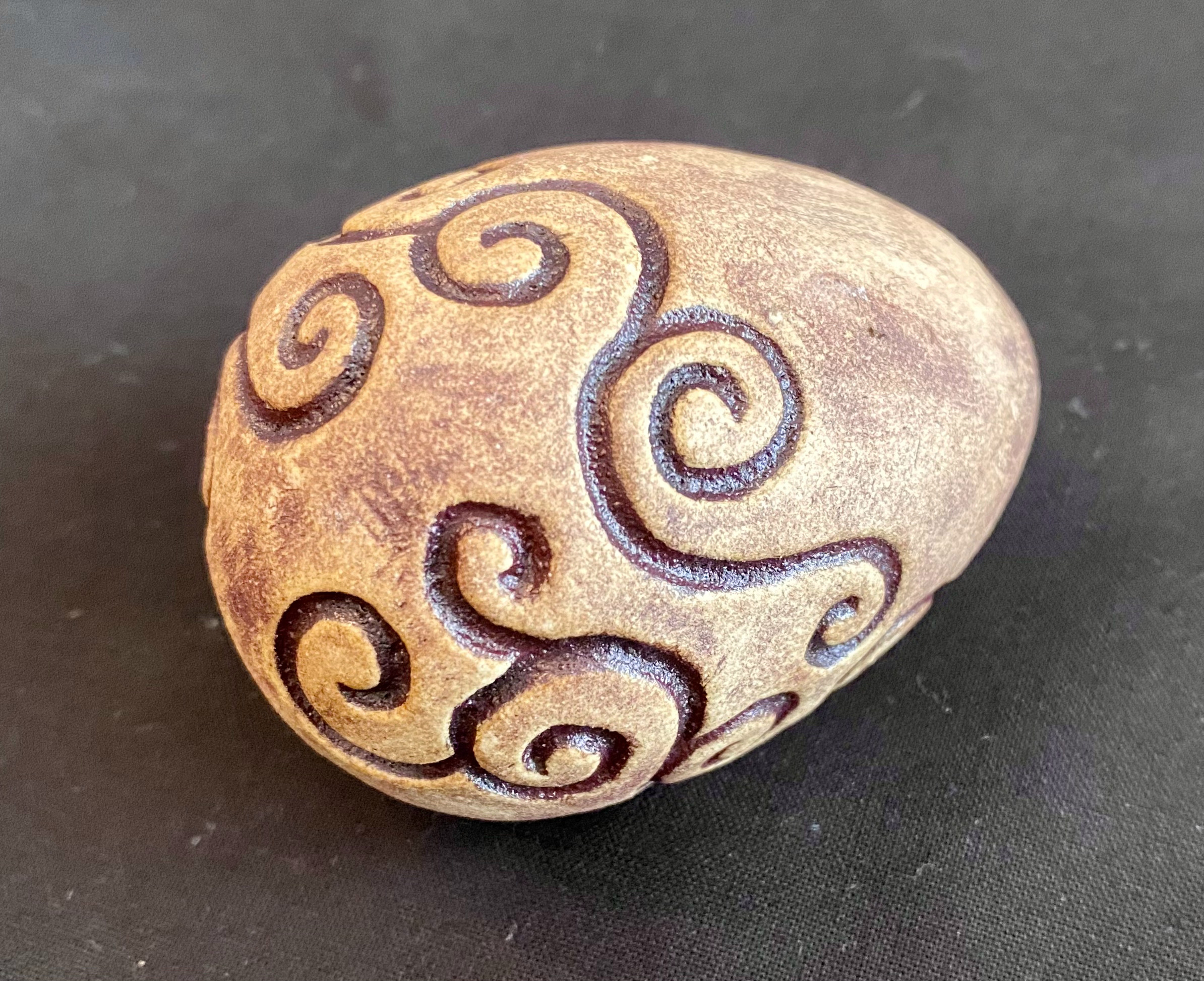 Next I found an amazing little owl egg shaker! With a face on one side, and just a hint of swirling pattern…