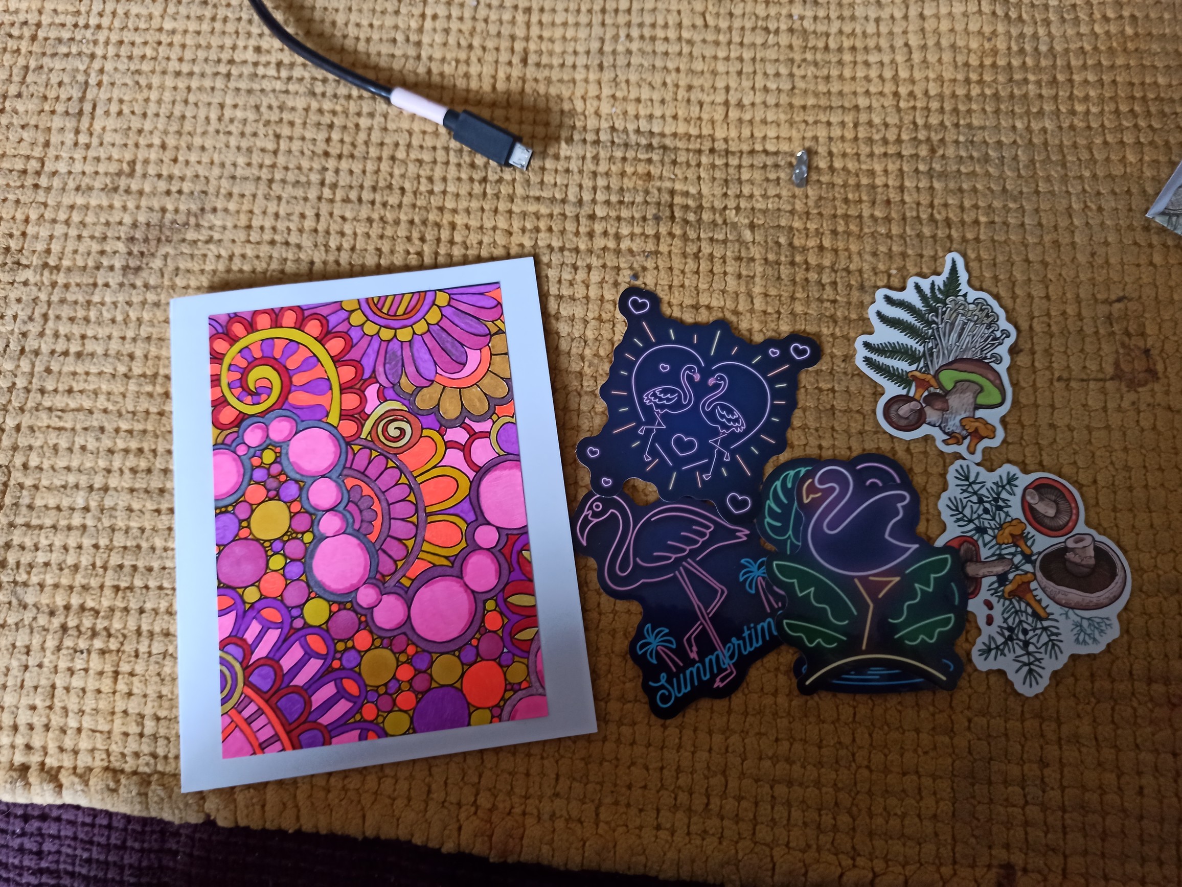 She knows me so well, mushroom and flamingo stickers and this lovely card.