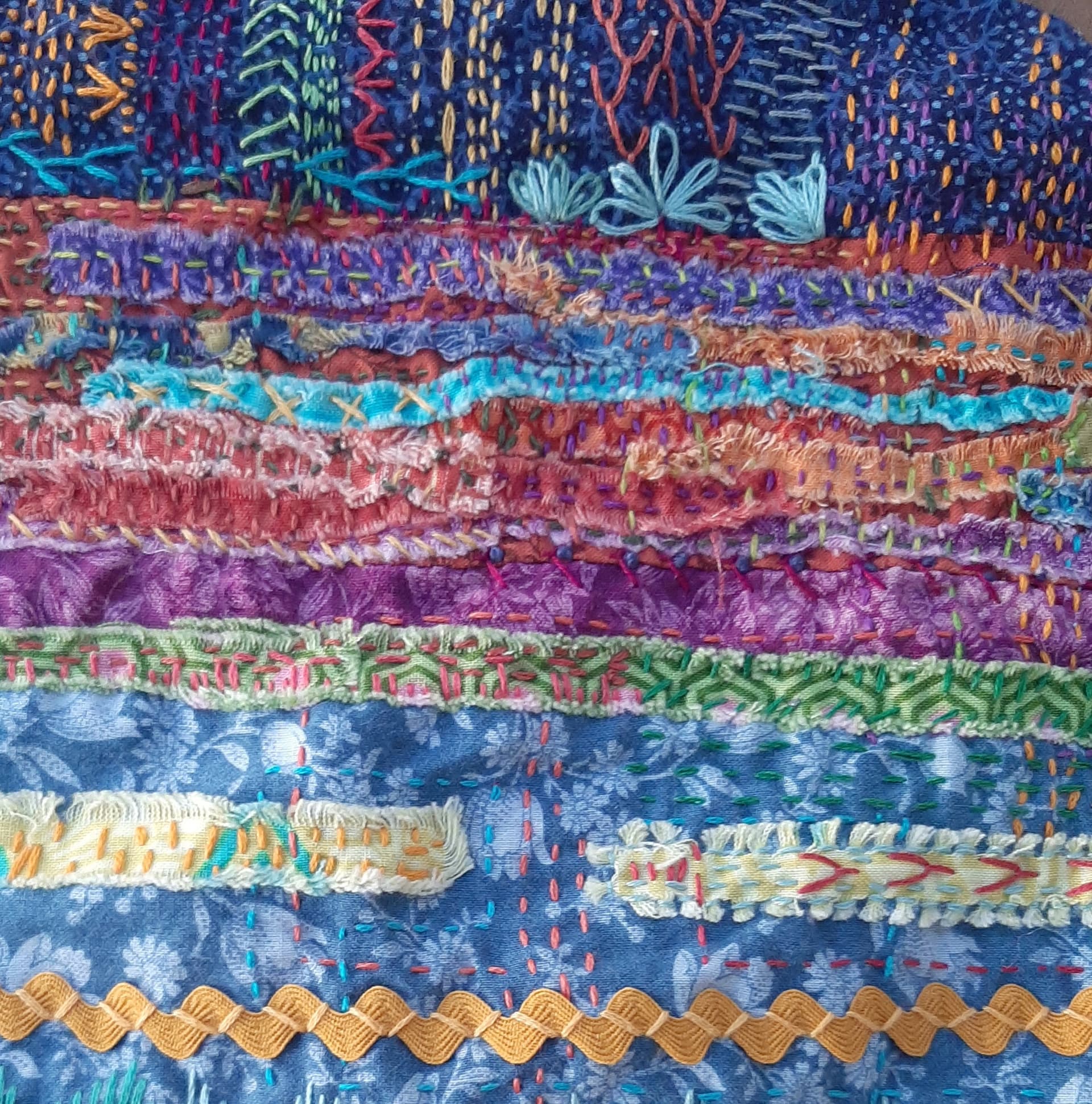 I basically begged @sloth003 for her Tula Pink scraps leftover from the amazing quilt she recently posted. I integrated a few gorgeous scraps into the already in-progress sleeve.