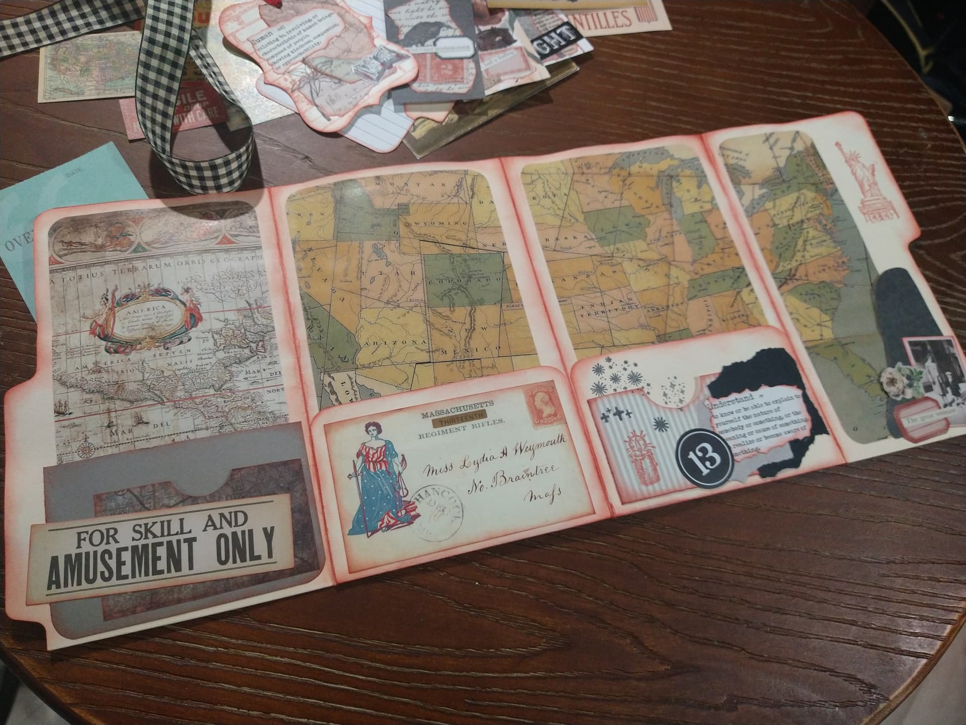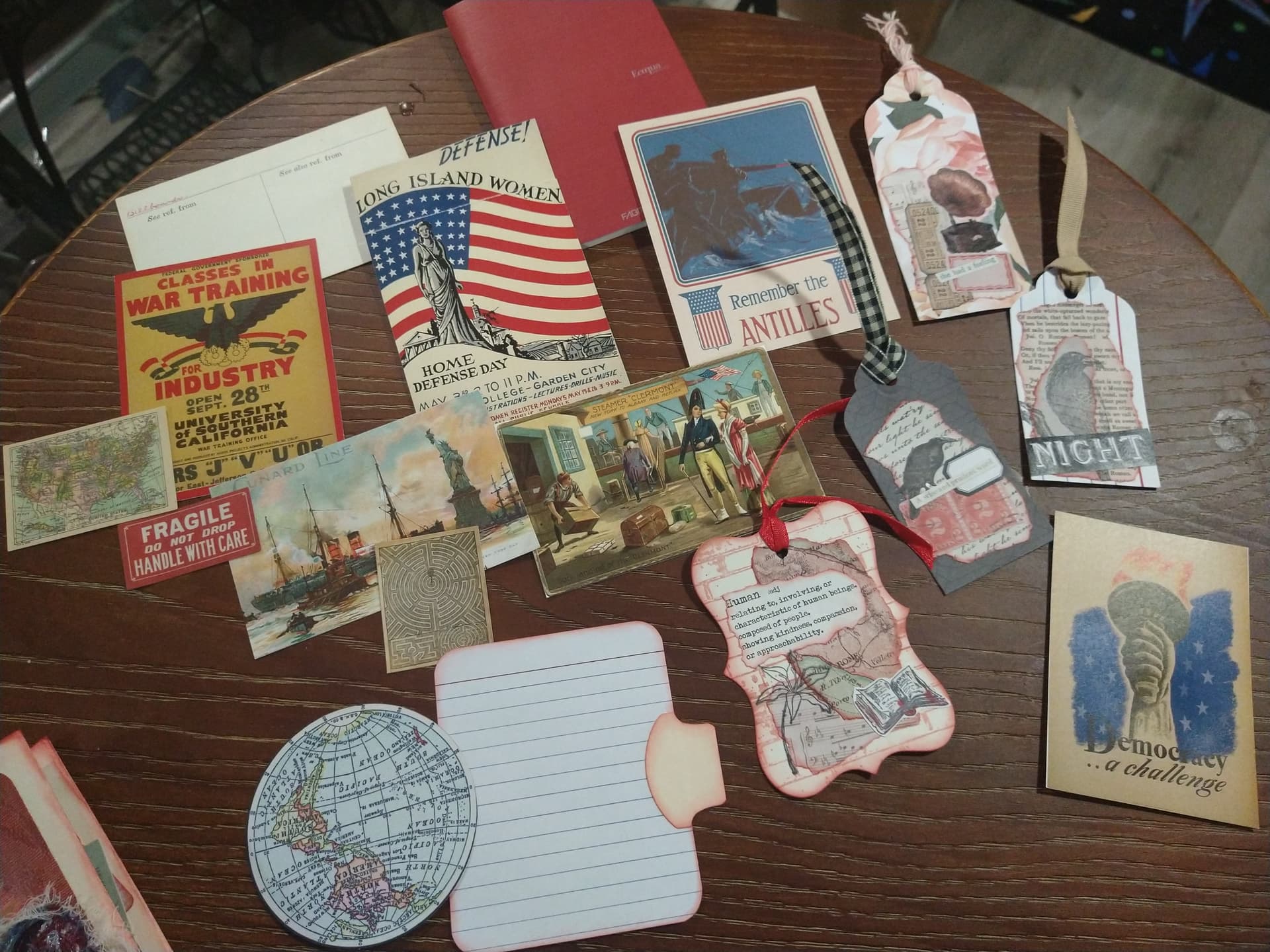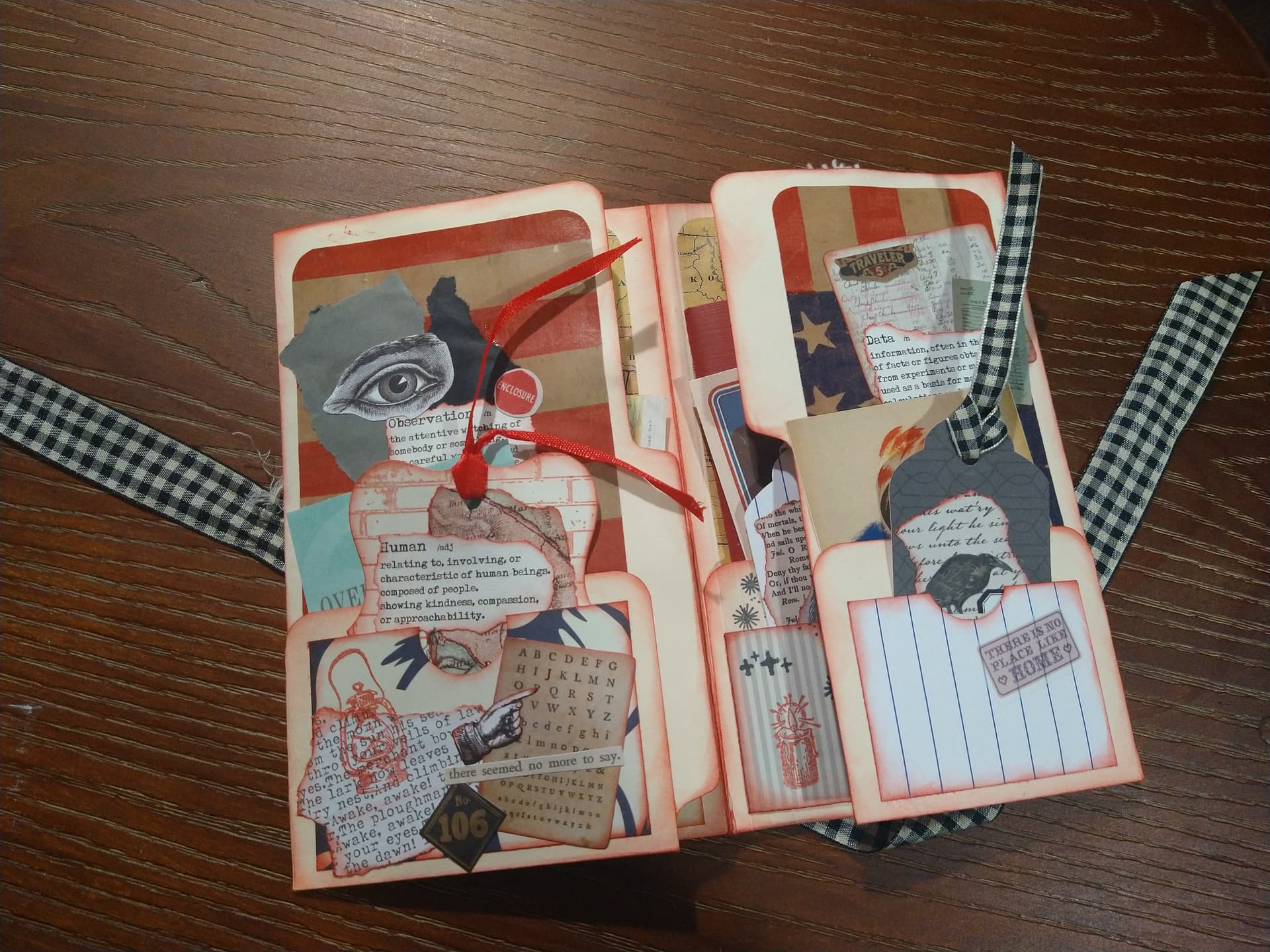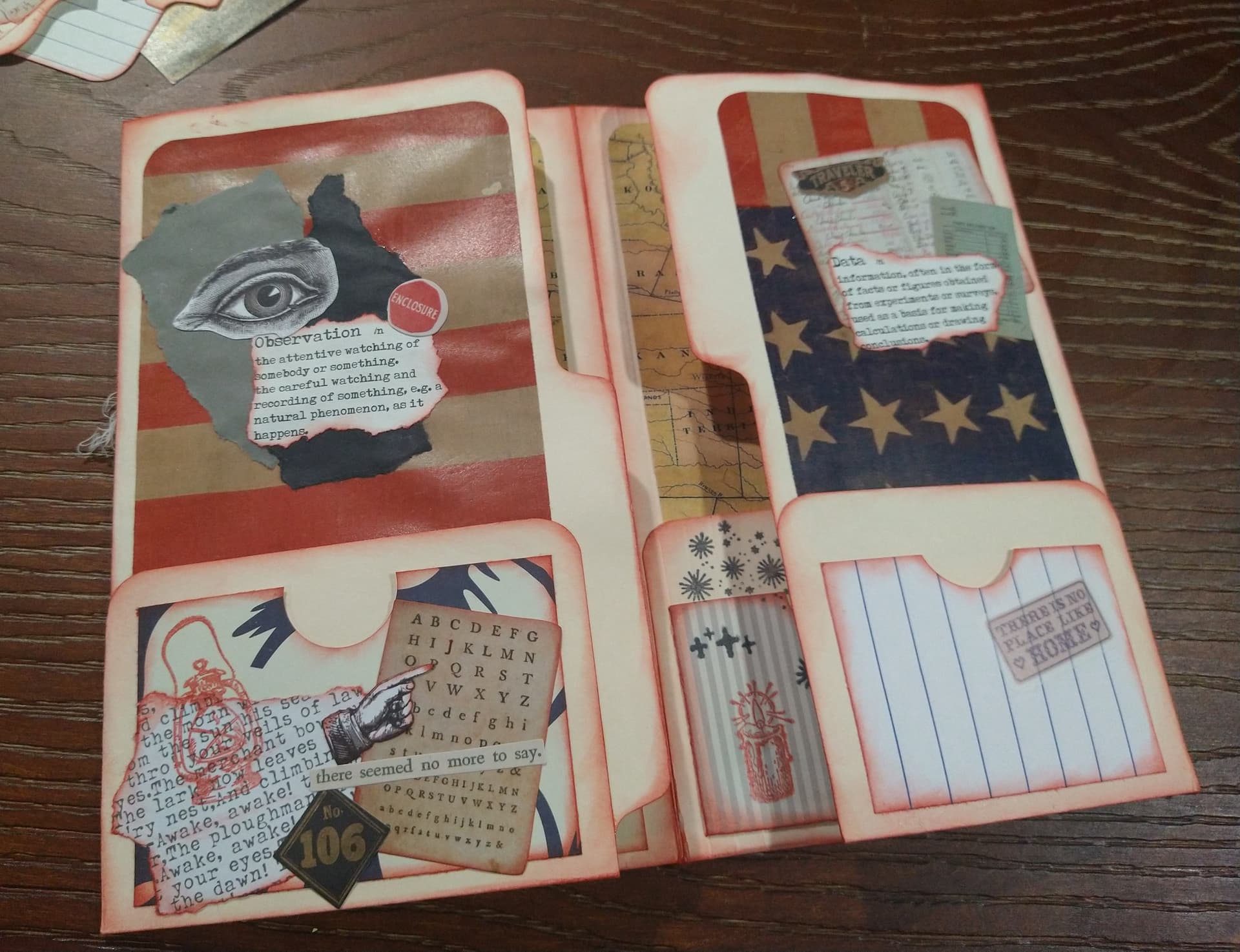 Thanks! I wanted something other than brown or black - a bit too drab for this project. Red tied together the color of the little notebook and most of the ephemera I had gathered from my stash while still being muted enough of a color to keep with that vintage vibe. I only have a few ink pads, and cyan, purple, and green definitely would not have looked right.