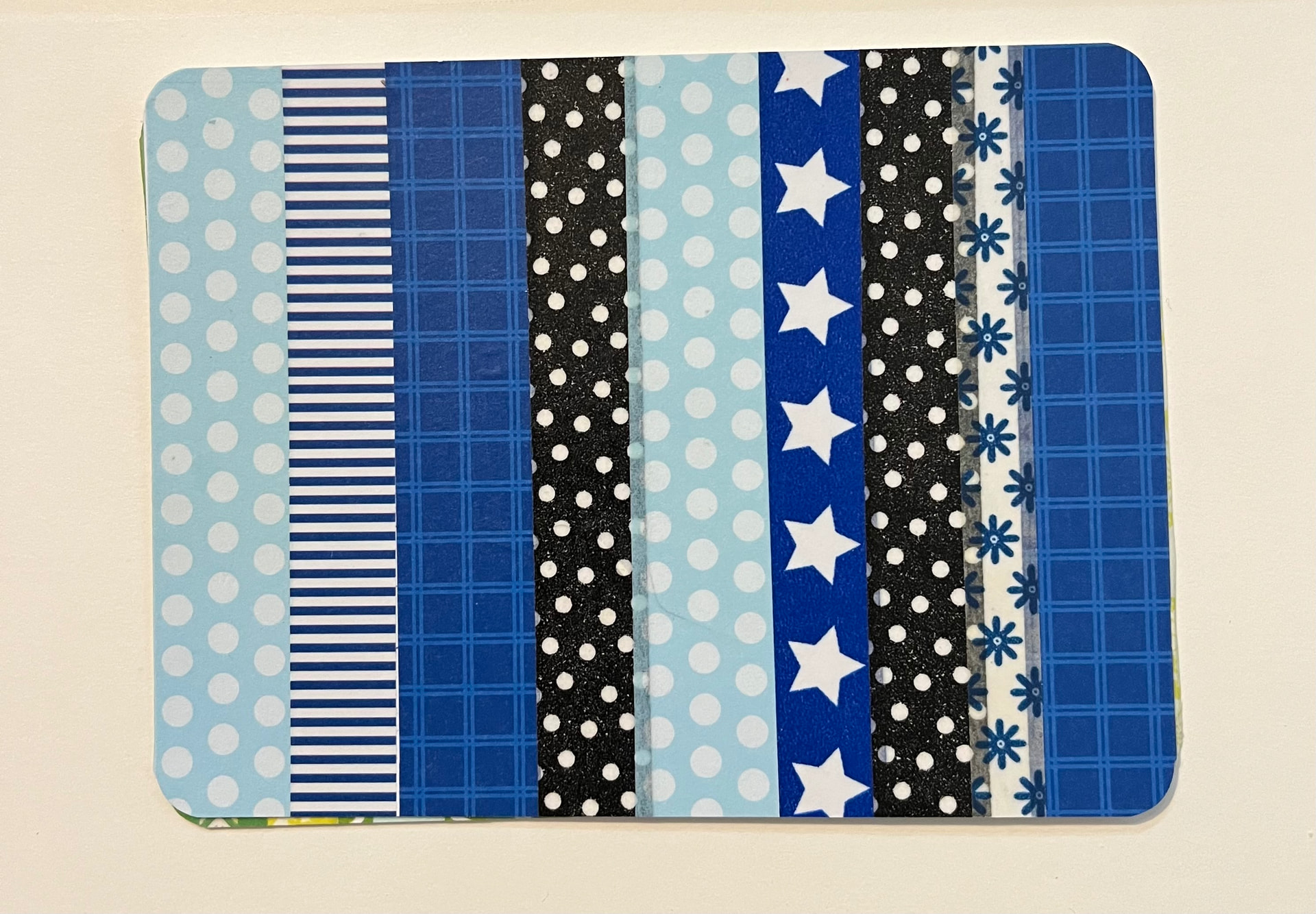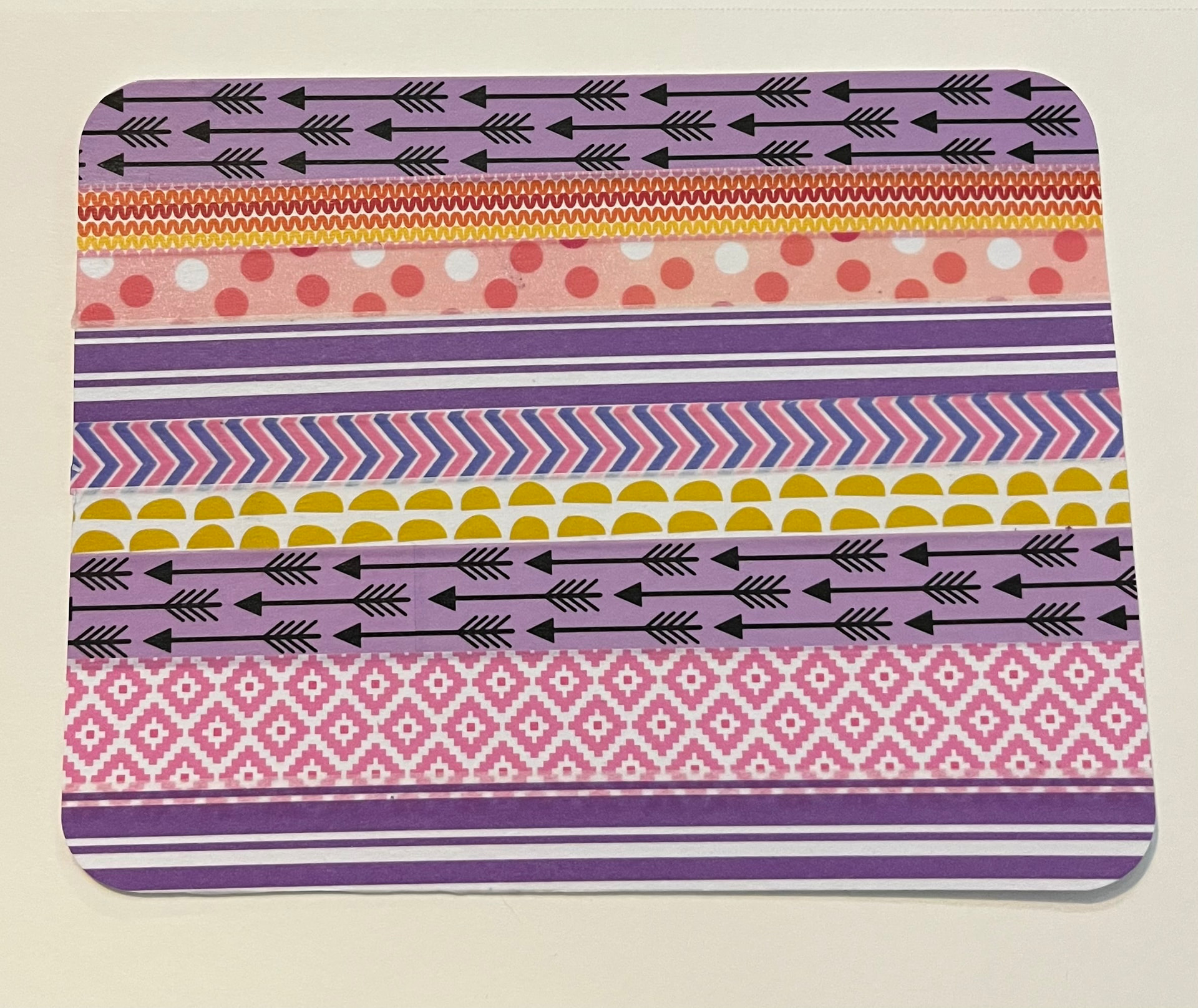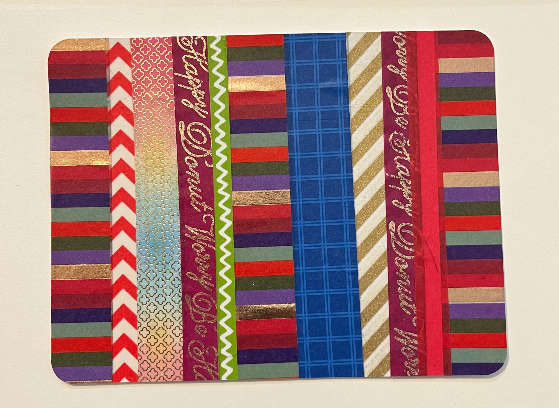 I covered sheets of 90 lb paper with washi, using a little bit of glue stick for the washi that wasn’t so sticky. Then cut down into 4s and rounded the corners