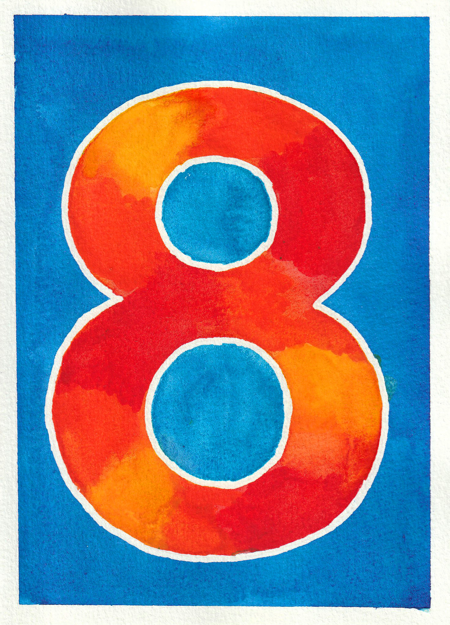 I really like the boldness of the design, both in color (I love orange and blue together), and the size of the number. The white outline does a great job of framing the number without chopping up the design, too!