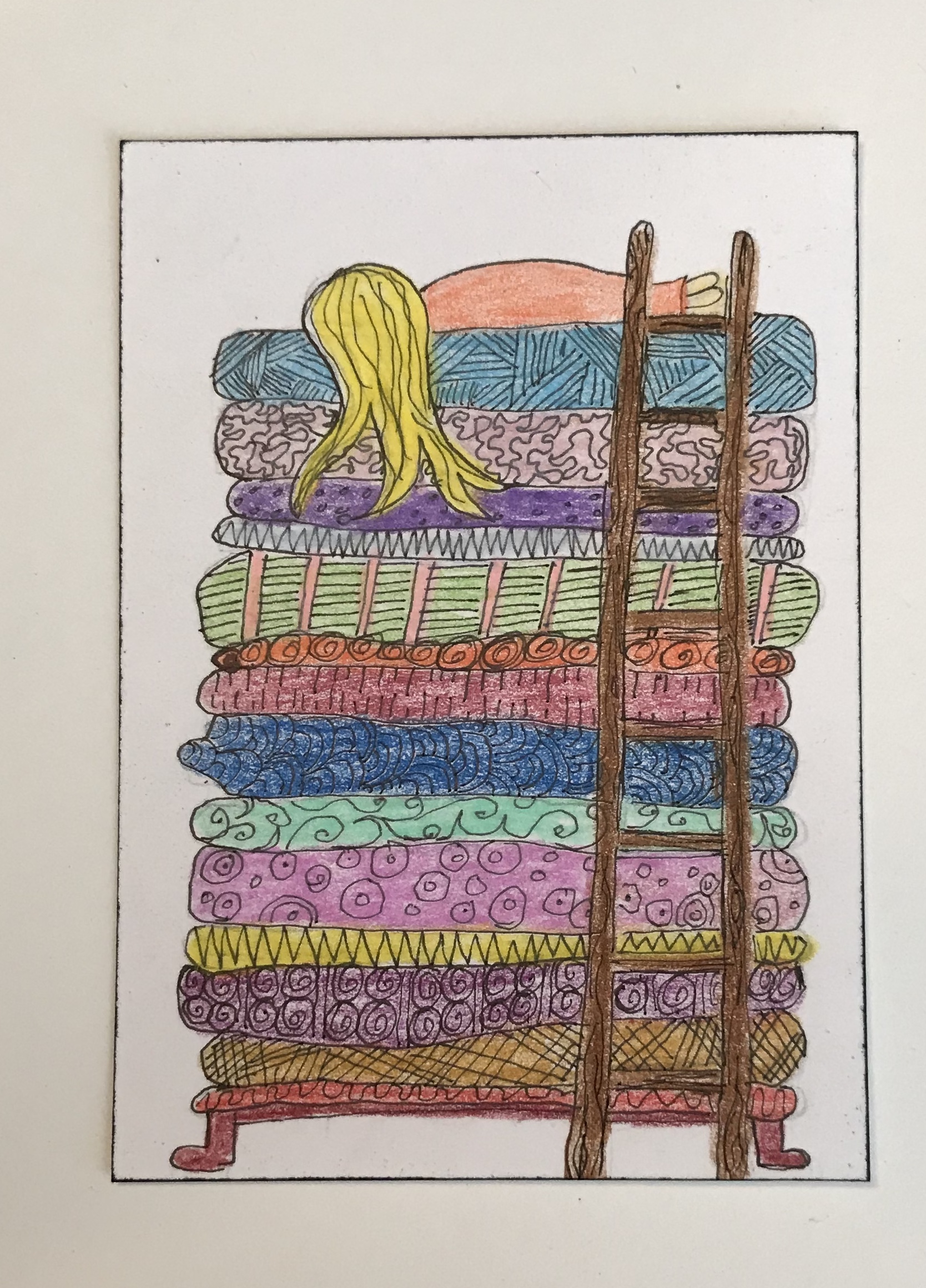 Fairy tale - princess and the pea. I went back to my origins and did a bunch of doodling