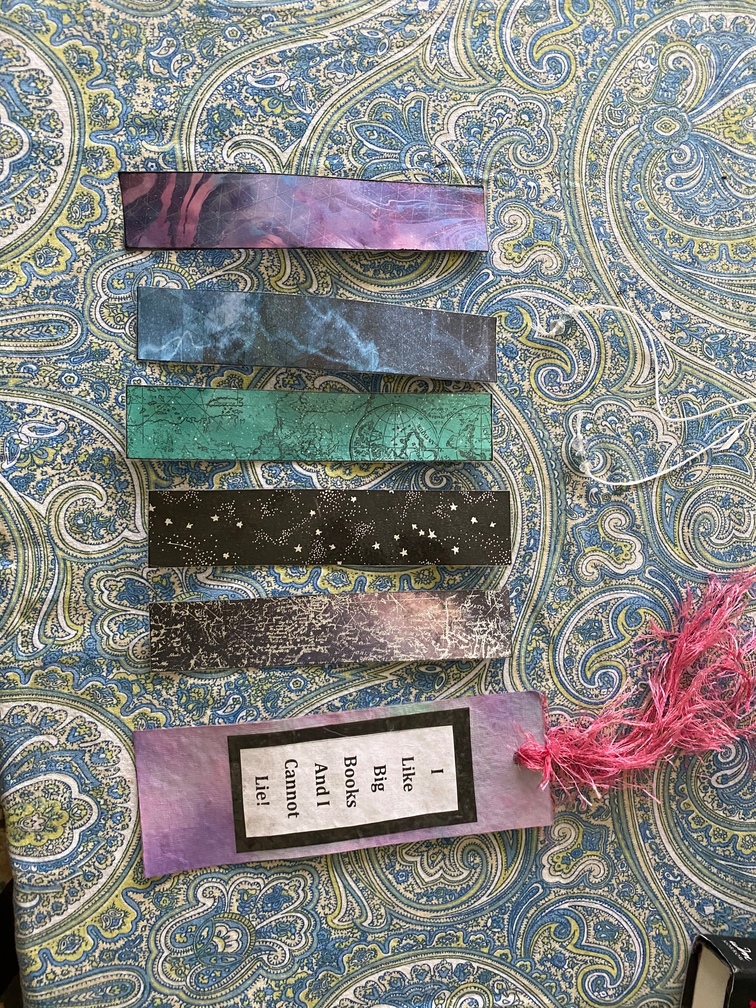 Then she made me all these bookmarks so Iâll never be without one! I love the shiny papers!
