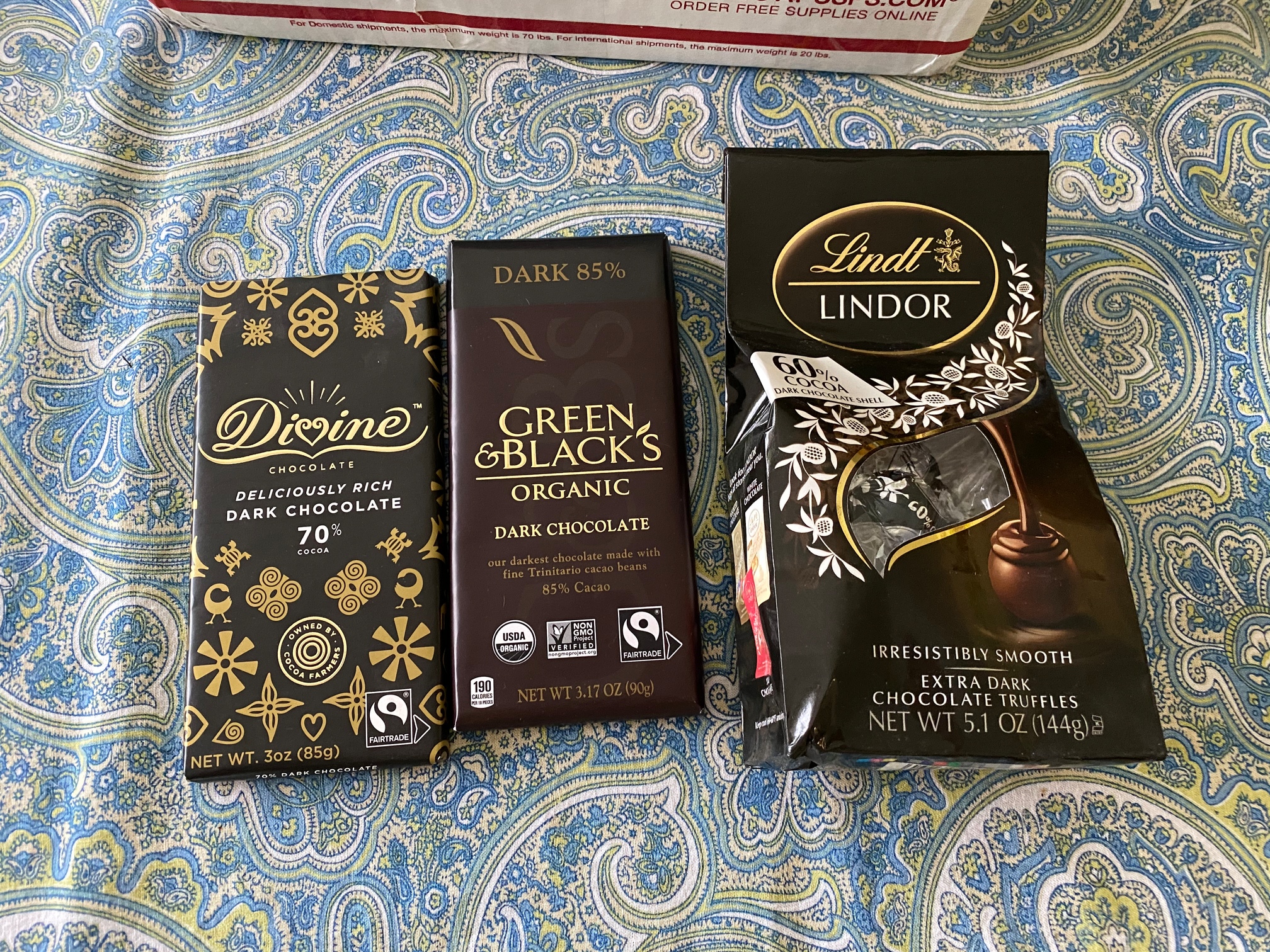 Fancy chocolates from a BOUTIQUE in Seattle ⌠Decadent is the only way to describe them (I feel bad, the closest thing we have around here is Seeâs ⌠and they were still closed because of the virus, so I had to settle for what I could get )