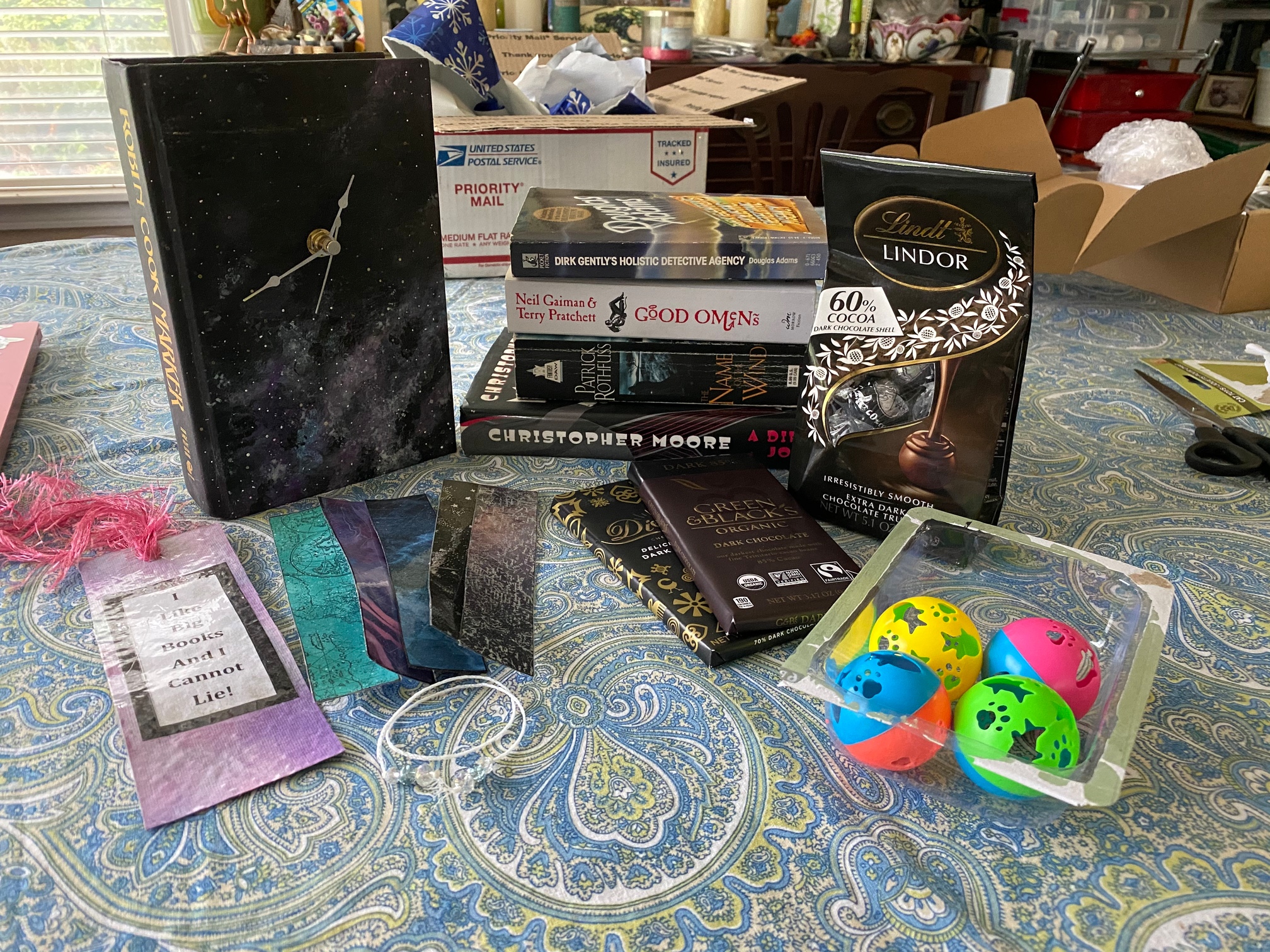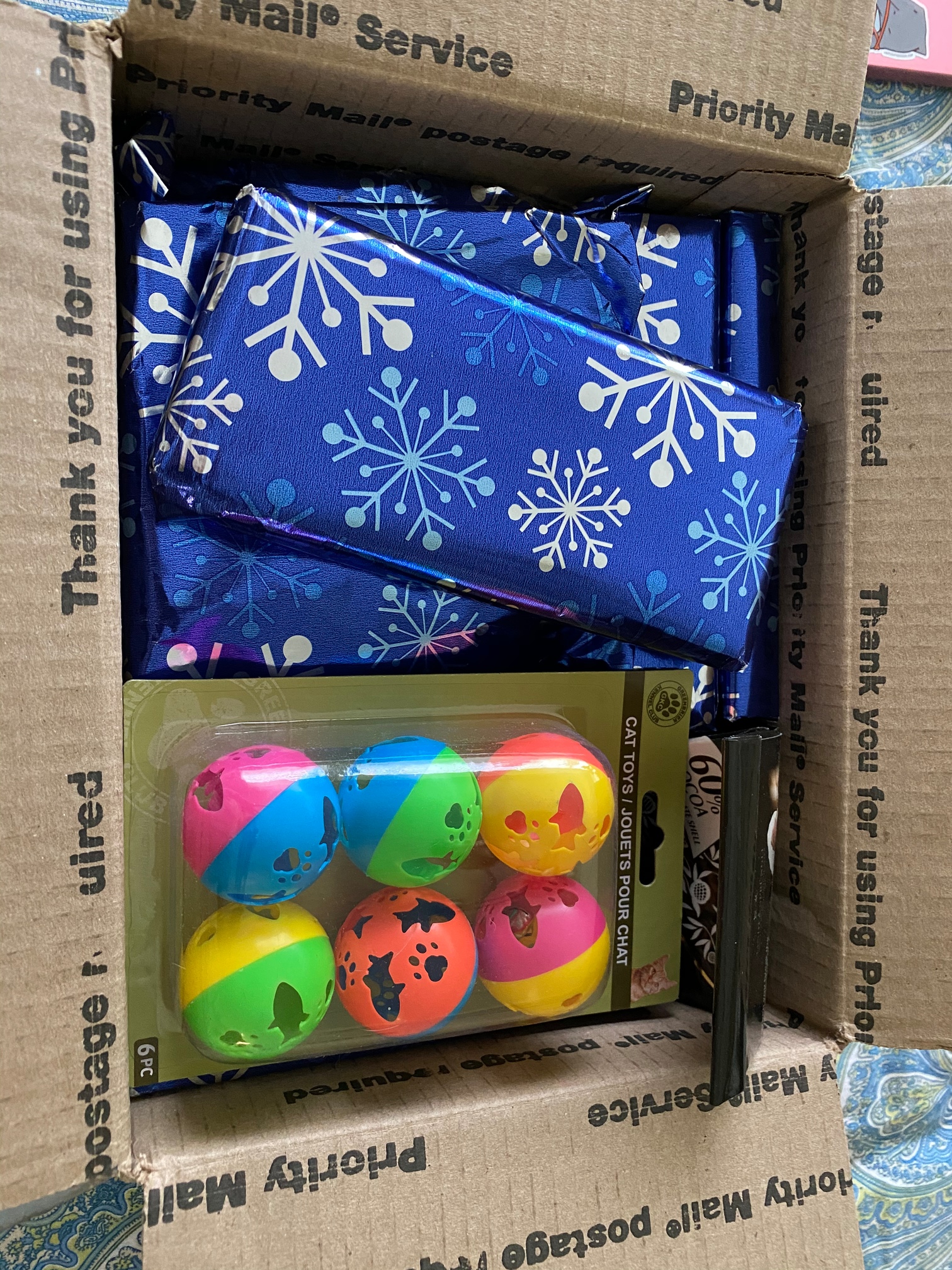 And the whole haul all together, minus a couple cat toys which disappeared right away. That was a really sweet touch. My kits are running around the house with them right now.