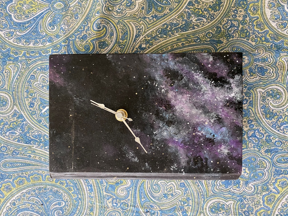 The piece de resistance is this gorgeous converted book clock which she hand-painted a galaxy on the cover of! So pretty! I am going to put it on my bookshelves, obviously.