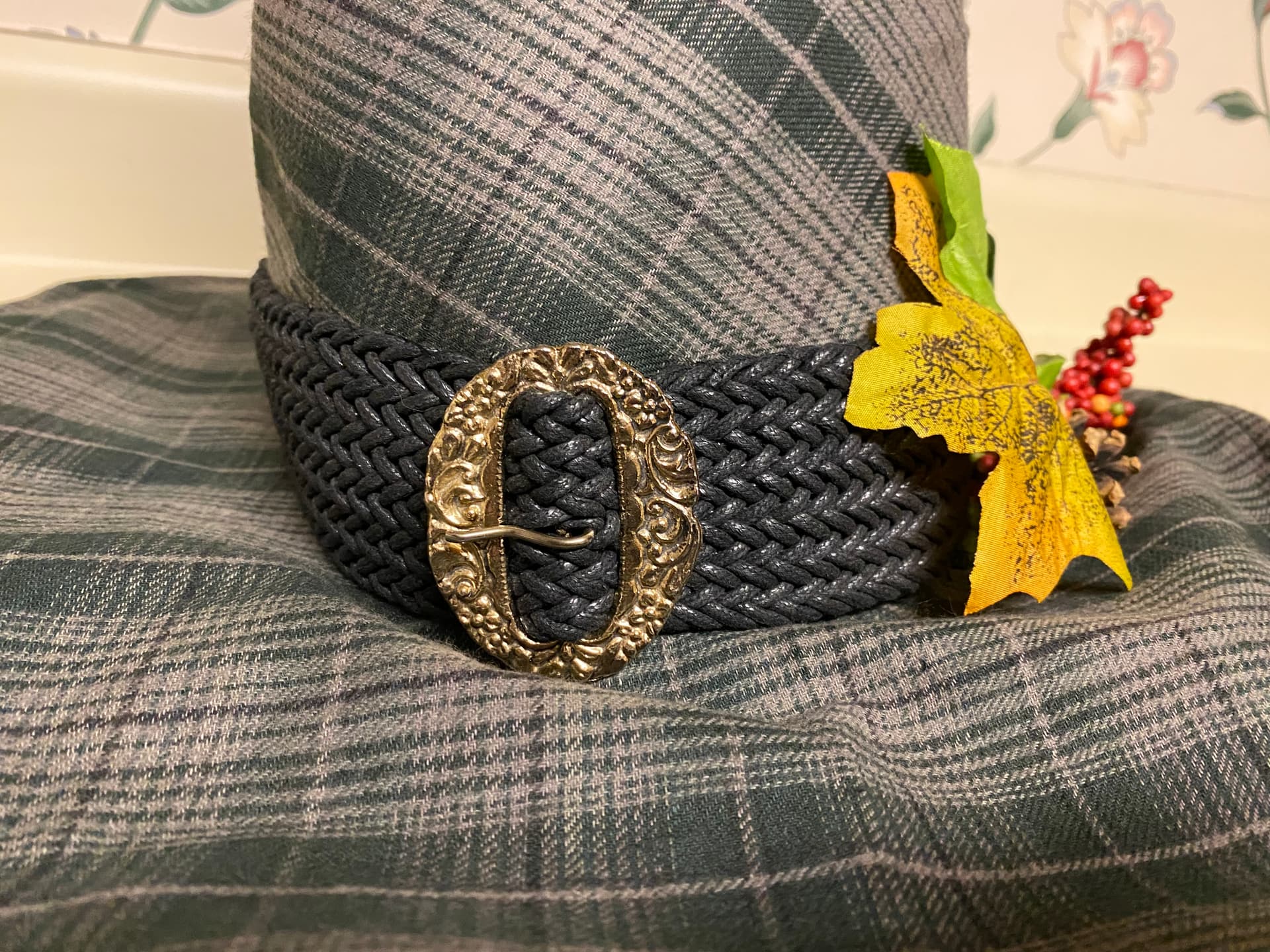 The hat band is a braided belt, and the buckle from another belt, both scavenged from Goodwill for a few bucks each.