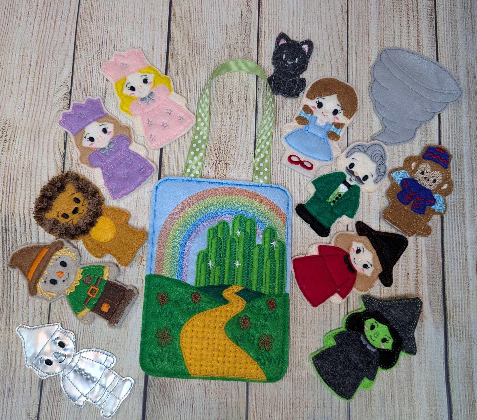 I made this cute Finger Puppet set of the Wizard of Oz. I changed the Wizard to look more like Jeff Goldblum’s version and added the extra witches. Everything turned out so cute. I really love making Finger Puppets and play sets.