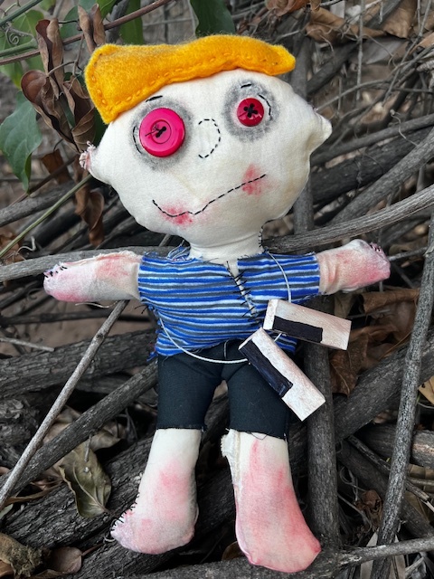 I participate in a yearly zombie doll swap - ALL forms of dolls acceptable - the swap hostess always has a fun theme - and this year it was “It’s the Great Pumpkin, Charlie Brown” - - I knew my swap partner to be an accomplished pianist - so I HAD to zombify SCHROEDER!